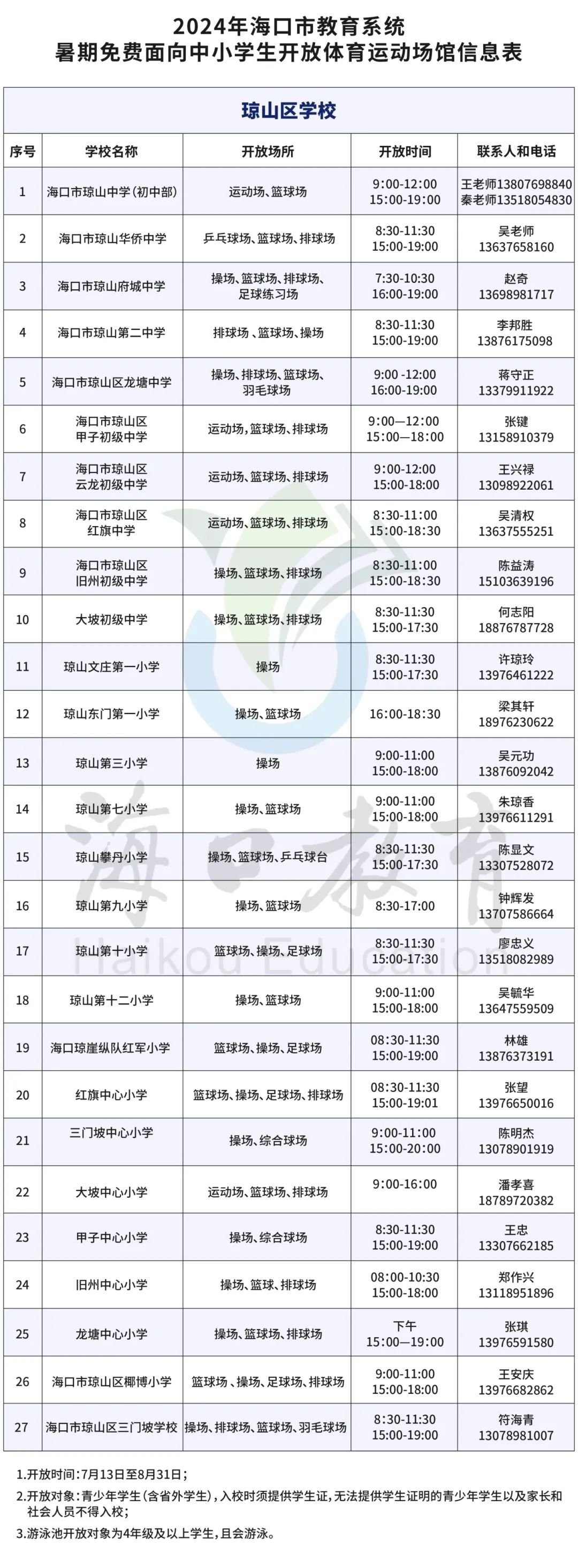 (原标题:免费!海口这些学校体育场馆向学生开放→)