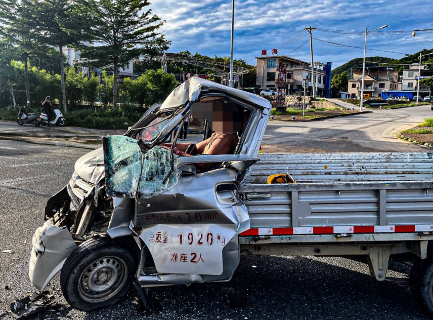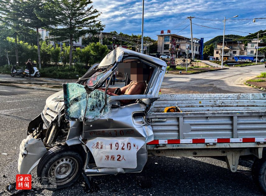 小货车追尾致司机被困 三亚消防紧急救援