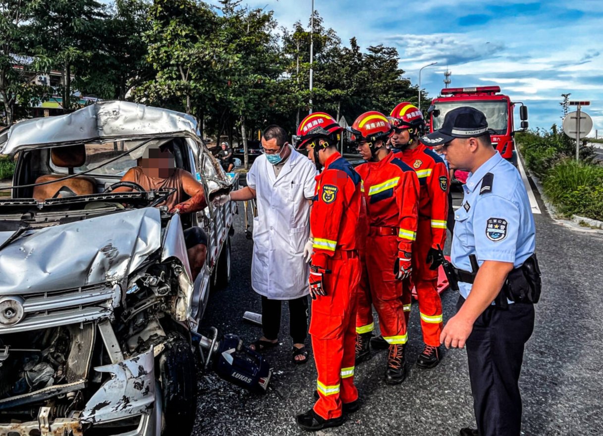 商报全媒体讯(椰网/海拔新闻记者 熊文颖 通讯员 莫文彬)9月21日7时许,三亚市崖州区国营南滨农场G98环岛高速南山方向发生一起交通事故,一人被困车中。接到报警后,三亚消防立即调派救援力量来到现场处置。