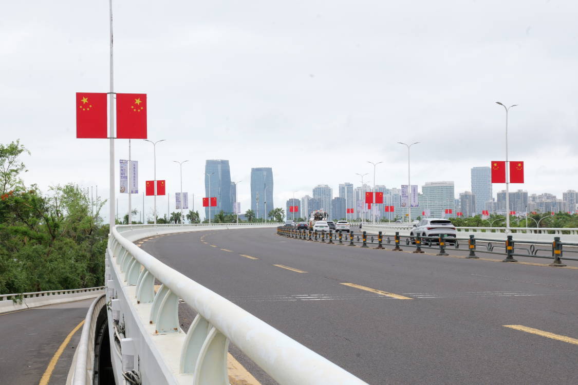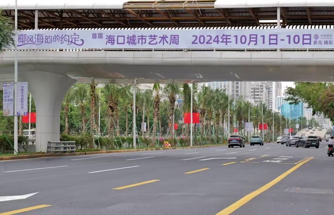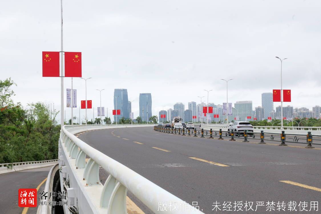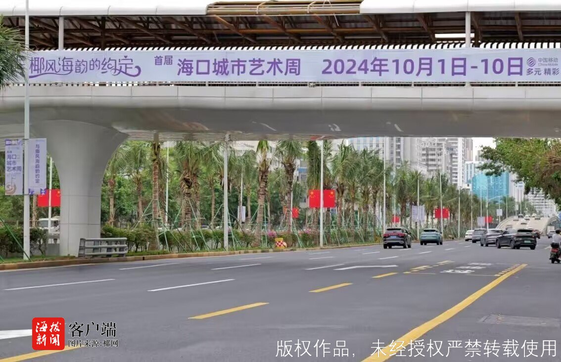 喜迎国庆氛围浓 海口街头飘起“中国红”