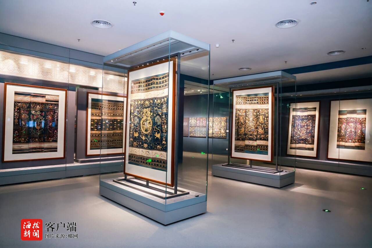 其中,非遗展馆位于省非遗展示中心南塔海南省文化馆1—4层,展厅面积近7000平方米,设有海南非遗基本陈列展厅和黎锦技艺专题展厅,精选了巨型椰雕、精美龙被等300余件(套)颇具代表性的非遗实物与观众见面,以“海”“山”“城”为展览主线,从与海洋有关的非遗、少数民族非遗和汉族非遗三个方面对海南省级以上非遗代表性项目应展尽展,包括32项国家级非遗代表性项目,让观众沉浸式感受非遗独特魅力。
