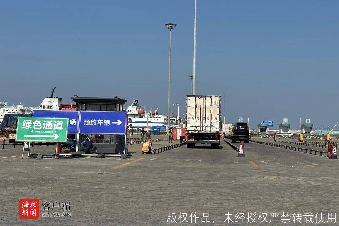 据介绍,港口与征稽、检疫部门一体化联署办公,出岛货车通过“琼州海峡轮渡管家”或“新海港”微信公众号进行预约购票,通过“一站式过海服务”,绿通车辆司机不下车就可缴交、办结业务,实现快速办理、高效登船。