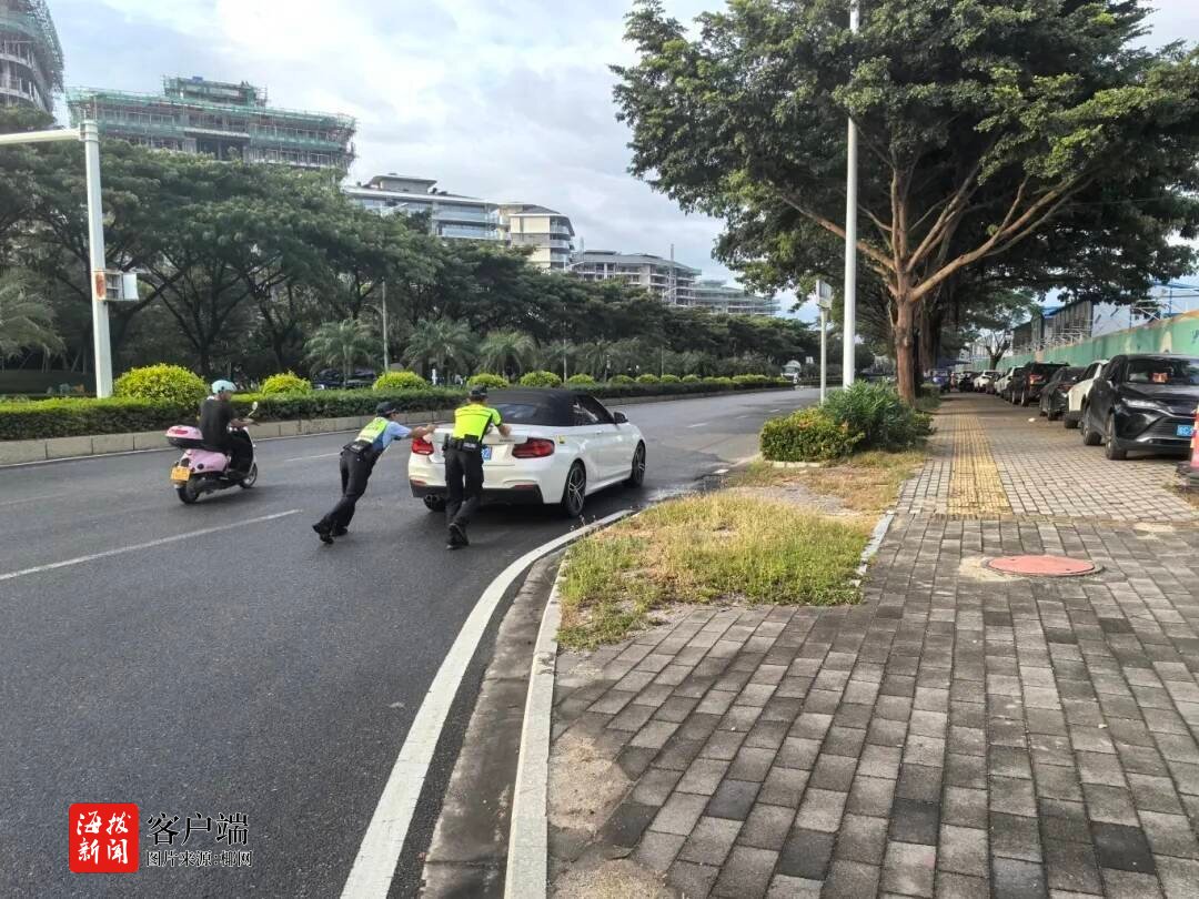 商报全媒体讯(椰网/海拔新闻记者 黄力萍 通讯员 徐喆)近日,记者从三亚交警获悉,一辆白色小型桥车在三亚市海棠区龙海路没油无法启动,导致整条路段车流通行缓慢,执勤交警分工明确,在群众需要帮助的时候第一时间给予帮助。