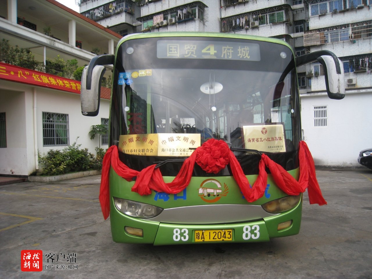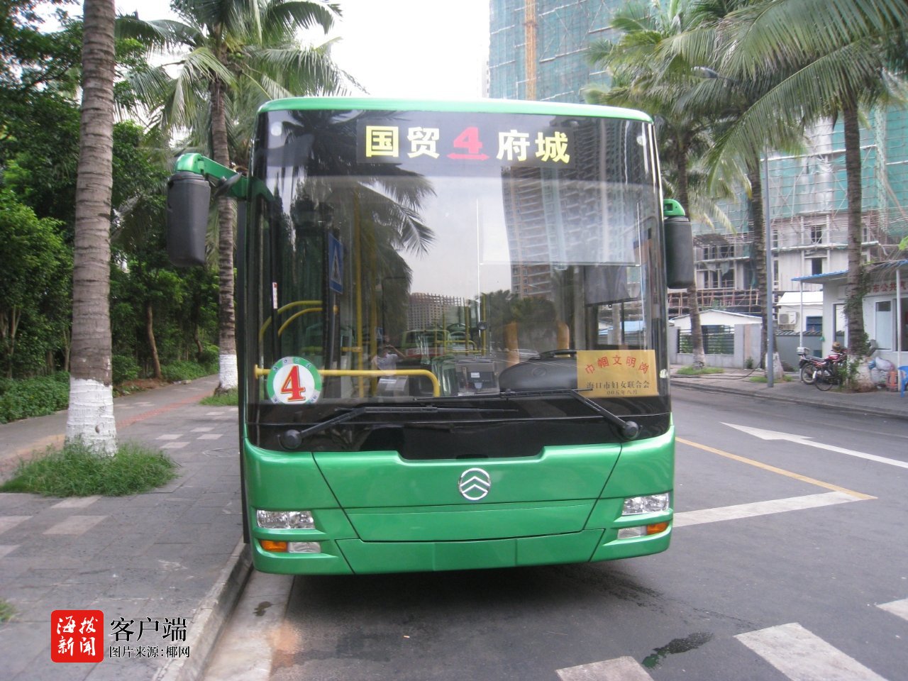 4路公交车升级为绿色环保的新能源车。4路公交线路始发站在文华东路,穿梭于海口市琼山区、美兰区、龙华区之间。