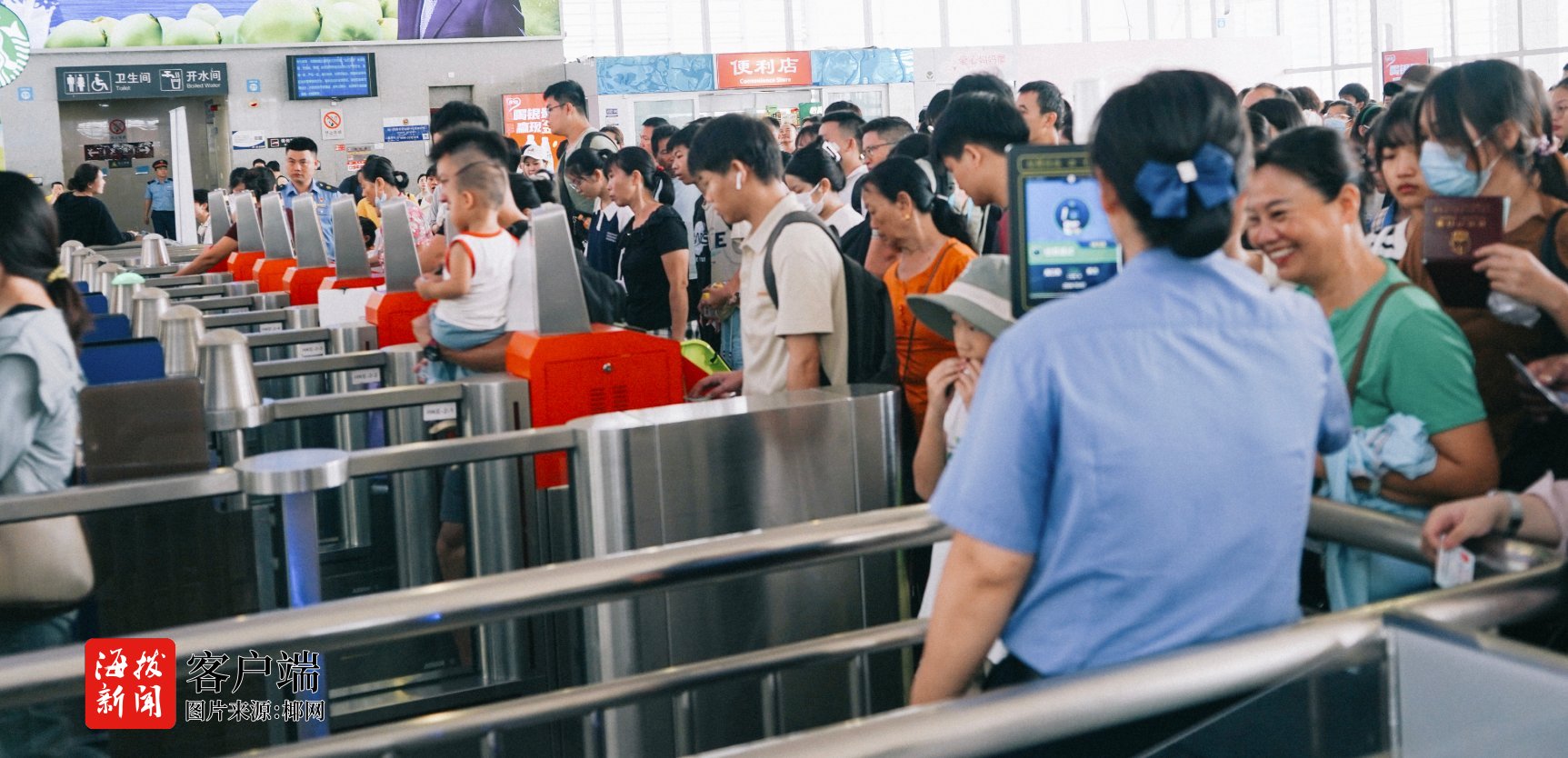 今年国庆假期期间,海南环岛高铁海口东站内人声鼎沸,热闹非凡。10月2日,在海口东站站台上,一列列环岛高铁如银色巨龙般穿梭往来,车门一开,乘客们便迫不及待地涌入车厢,或拖着行李箱,或背着背包,脸上洋溢着期待与兴奋。他们中,有全家出游的温馨家庭,有结伴而行的年轻朋友,还有慕名而来的外国游客,每个人都怀揣着对海南美景的向往。