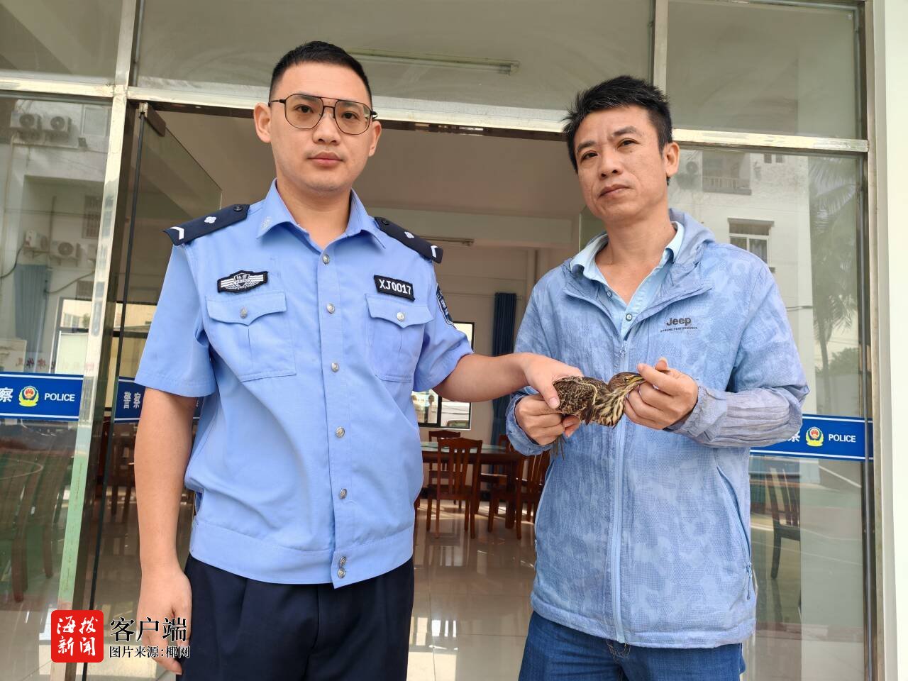 民警查看了这只疑似受伤的鸟,发现鸟的体表没有明显伤痕,可能是因为夜间出来觅食误入居民家中,导致暂时失去飞行能力。了解情况后,民警将这只鸟带回派出所进行保护照看,并通知三亚吉阳区野生动物救助站工作人员前来移交处置。