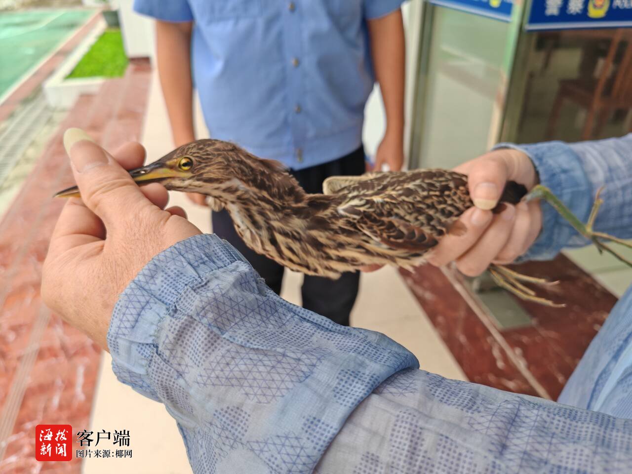 商报全媒体讯(椰网/海拔新闻记者 熊文颖 通讯员 林黎思 黄恒)10月26日,三亚市公安局红沙海岸派出所民警在三亚红郊社区救助一只夜间误入居民家中无法飞行的三有保护动物栗韦鳽,并移交三亚吉阳区野生动物救助站工作人员救治。