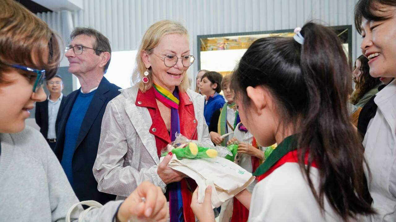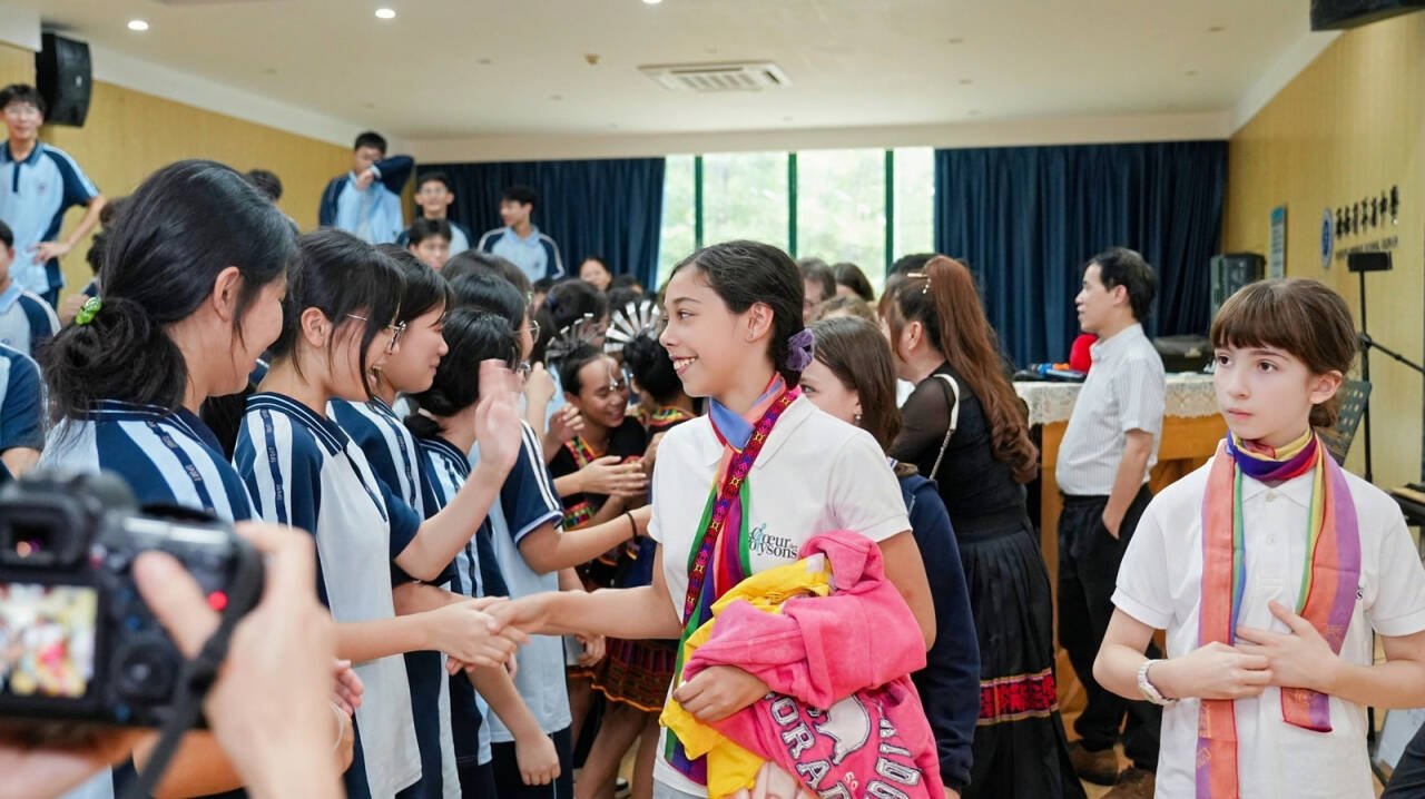 合唱团一行首先参观了洋浦经济开发区展示馆和图书馆,深入了解儋州洋浦的经济发展历程和丰硕成果。随后,两支合唱团与儋州洋浦第一小学仙人果合唱团、海南洋浦中学合唱团进行了音乐交流。在友好的氛围中,孩子们用歌声传递着彼此的情感,分别展示和演绎了多首中外经典曲目。此外,宝丽声童声合唱团和五指山黎苗童声合唱团一行还亲身体验了独具地方特色的儋州调声,感受了海南传统音乐的魅力。