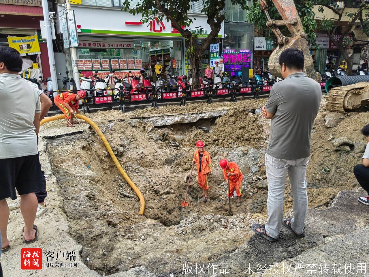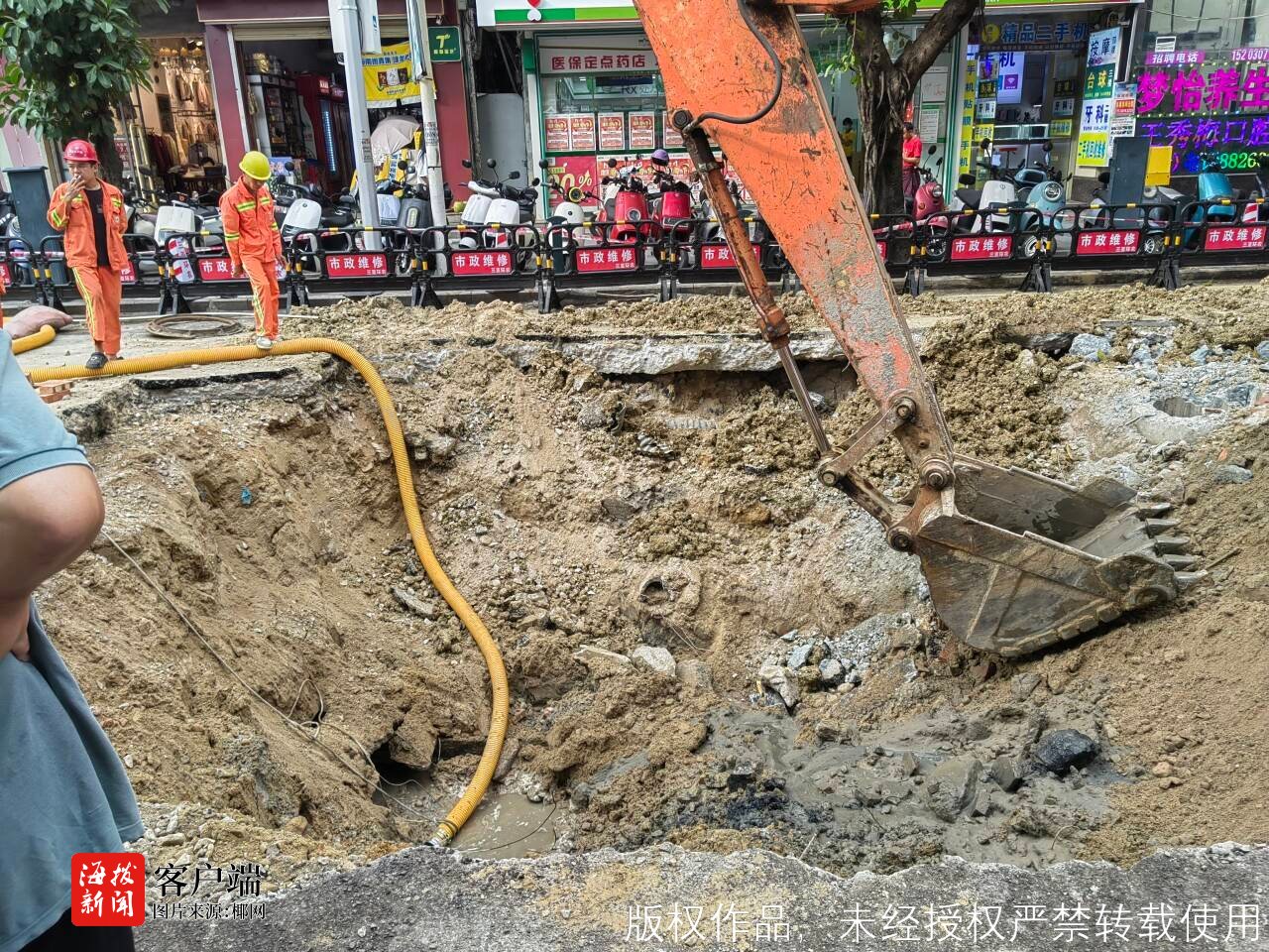 三亚环农集团污水管网公司工作人员李天亮告诉记者,事发时的塌方面积约3米×3米,深1米多。目前已对塌方点开挖,进行管道及检查井修复,预计今天(10日)完成修复,明天开始回填,并浇筑混凝土,具体通车时间尚不确定。