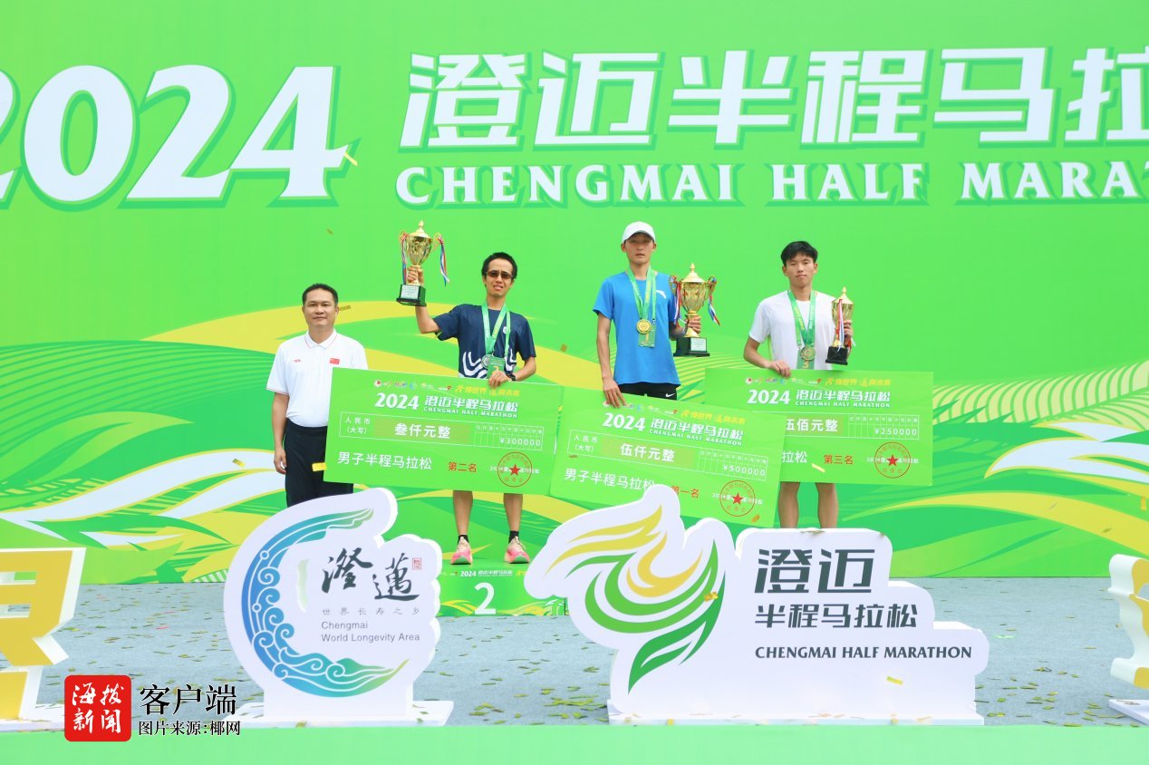 经过激烈角逐,中国选手赵香波以1小时08分14秒的枪声成绩,夺得2024澄迈半程马拉松男子组冠军;罗尹余以1小时12分18秒获得男子组亚军;贺应兵以1小时15分37秒,获得男子组季军。