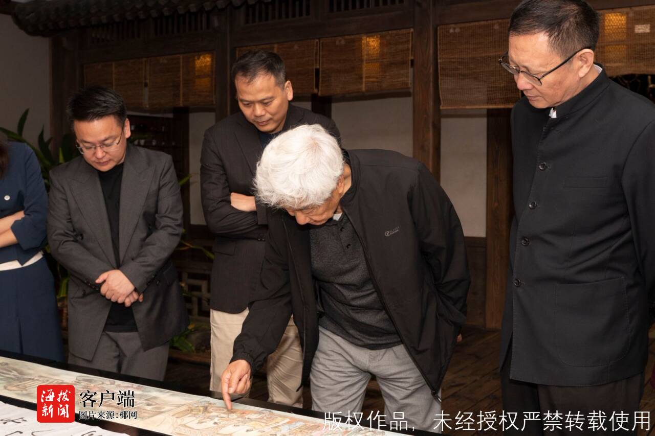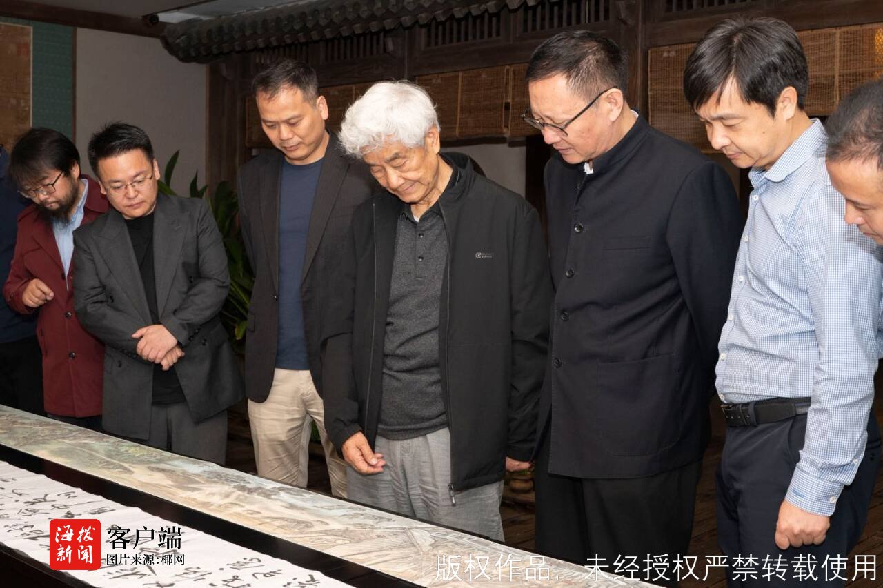 商报全媒体讯(椰网/海拔新闻记者 黄桂风 摄影报道)近日,在2024世界联合设计大会的海口特展上,一幅引人瞩目的作品——中国美术家协会会员、云南籍著名画家钟开天的巨制《郑和下西洋》500米国画长卷震撼登场,瞬间聚焦了艺术界爱好者、历史研究专家及当地民众的热切关注。紧接着,11月26日,海南海花岛苏东坡历史文化艺术馆荣幸邀请到钟开天先生莅临现场进行深入的指导与交流,并被该馆聘为“永久荣誉馆长”。在这一特殊的日子里,钟开天先生慷慨地展出了其力作《郑和下西洋》长卷的首卷,不仅为艺术界爱好者和观众带来了一场视觉盛宴,还亲自为大家解读了这幅作品的深刻内涵与艺术价值。