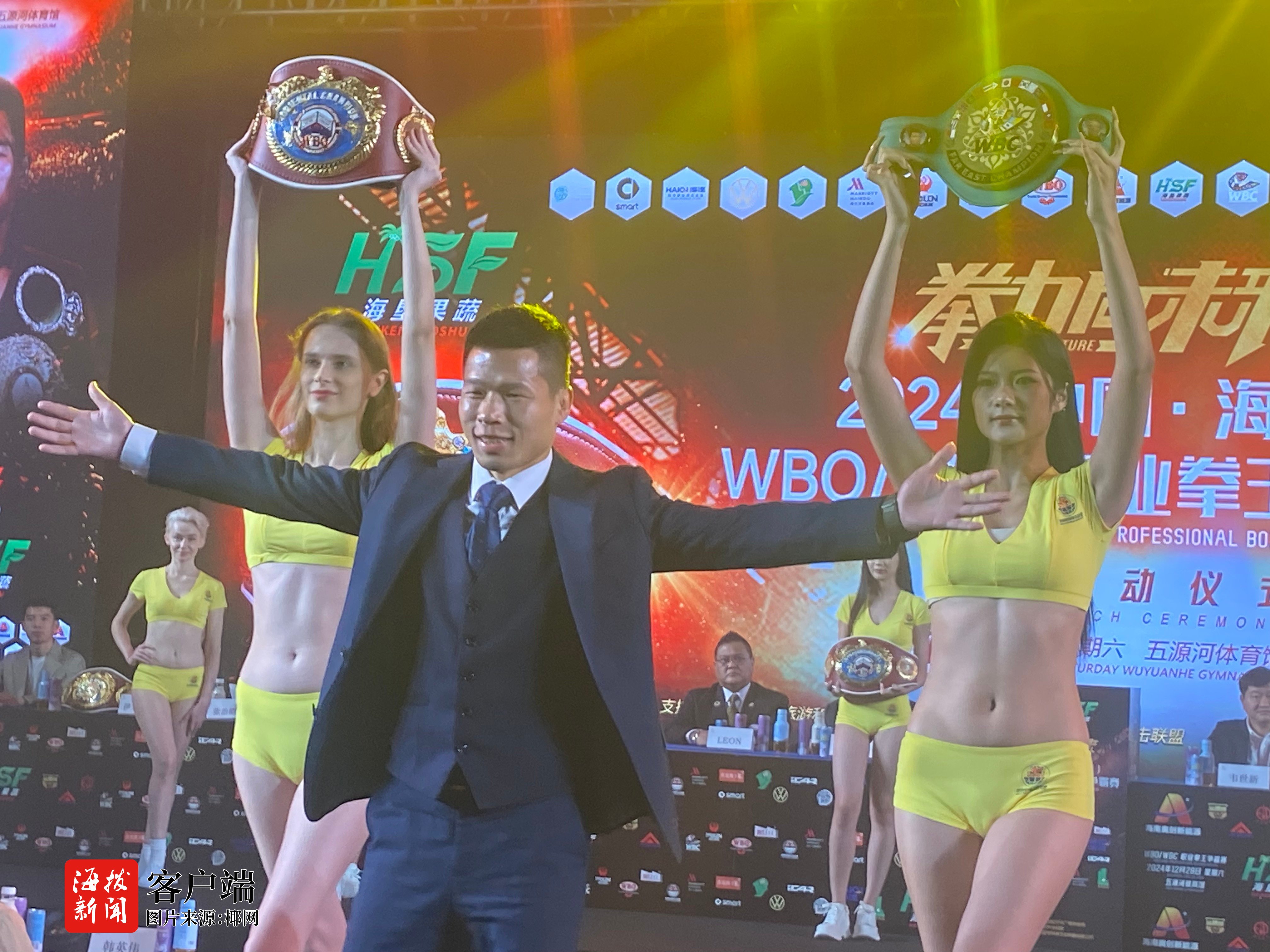 商报全媒体讯(椰网/海拔新闻记者 王辉)11月29日,“拳力向未来 2024(中国·海口)WBO/WBC职业拳王争霸赛”赛事启动仪式,在海口万豪酒店启动,这是海口举办的顶级职业拳击比赛。12月28日晚,十位职业拳手将在五源河体育馆上演巅峰对决,其中有五位中国职业拳手参与角逐,展示世界拳坛的中国力量。这是世界拳坛的盛事,也是海口这座美丽城市的英雄盛会。