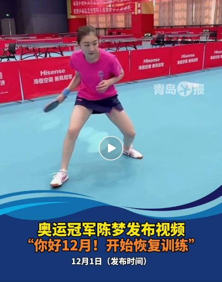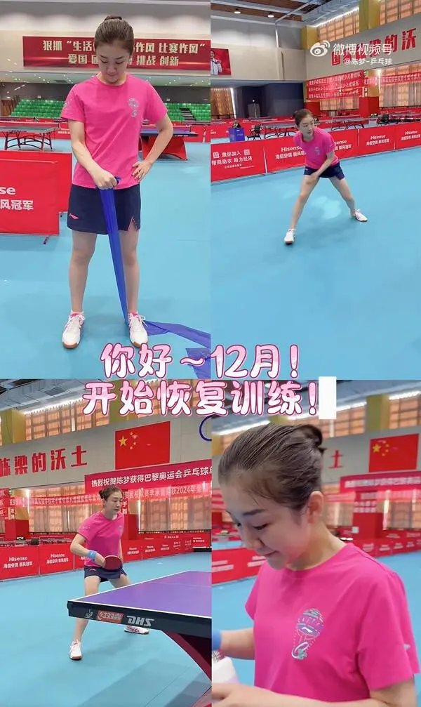 12月1日,巴黎奥运会乒乓球女单冠军陈梦在个人微博上发布动态,表示自己已经开始恢复训练,有望在12月重返赛场。