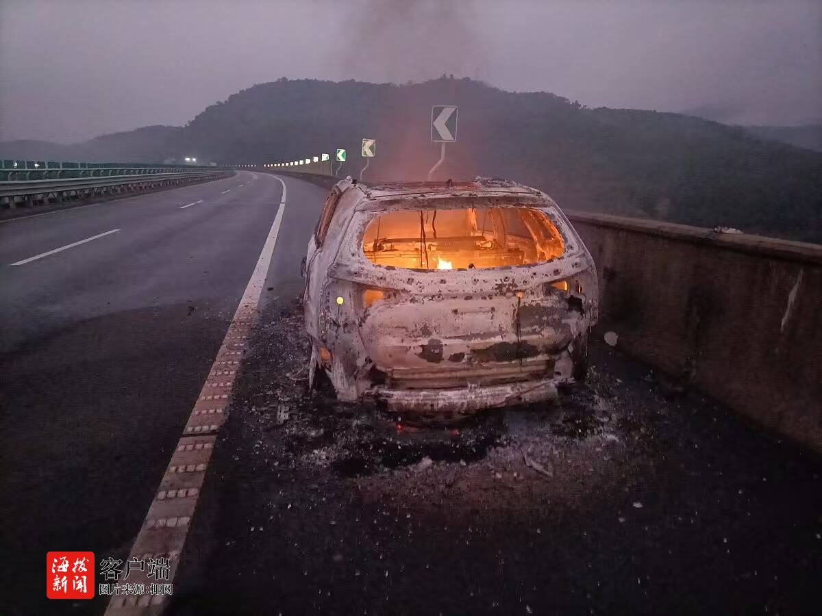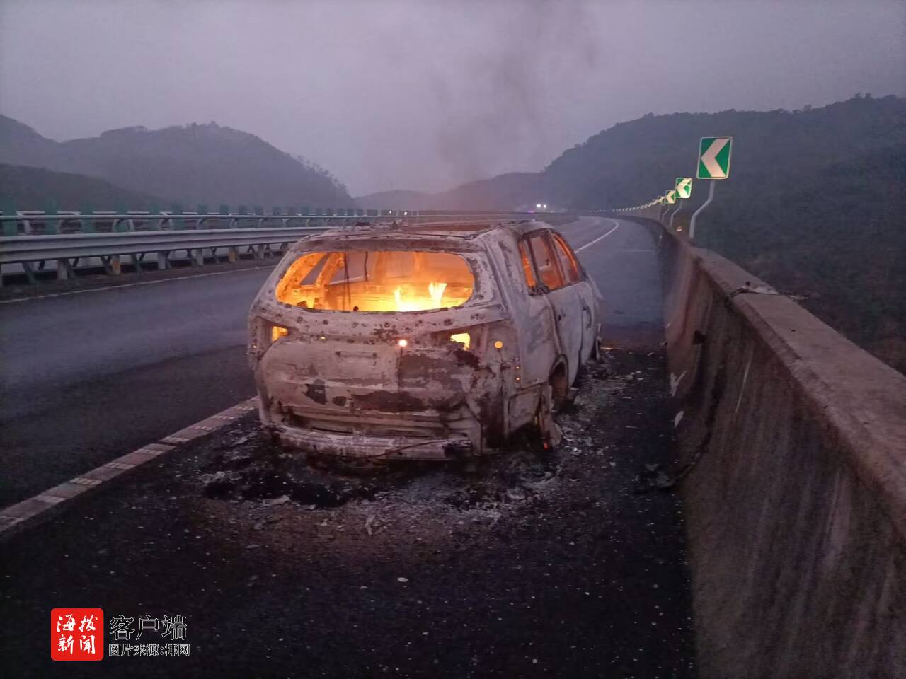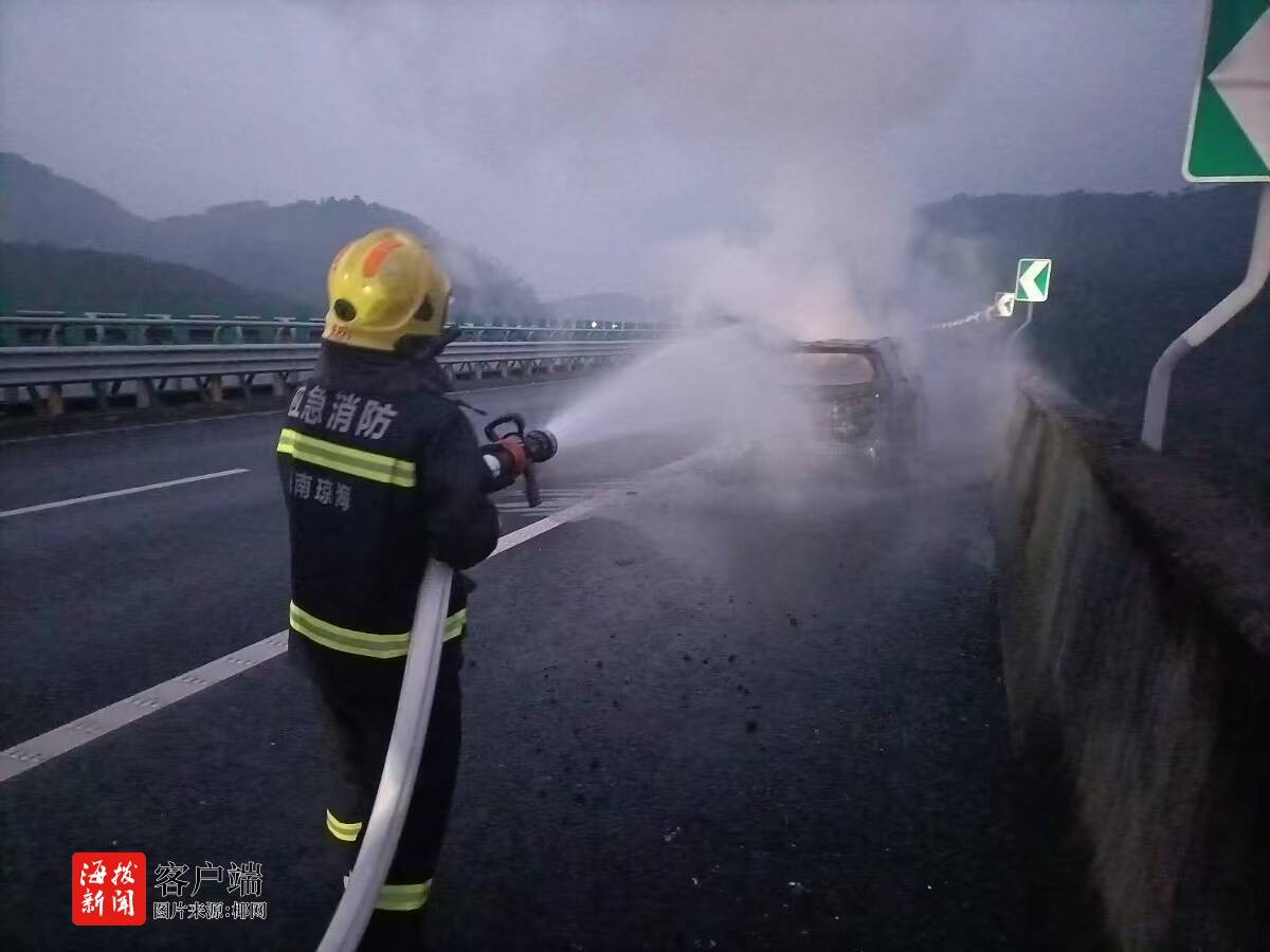 商报全媒体讯(椰网/海拔新闻记者 李兴民 通讯员 冯加起 摄影报道)近日,琼海市消防救援支队指挥中心接到群众报警,位于万洋高速五指山往琼海方向一辆燃油轿车车头着火,无人员被困。接到报警后,指挥中心立即调派博鳌消防救援站、中原专职消防站4车25人赶赴现场处置,经过紧急处置,消防救援人员成功将明火扑灭。