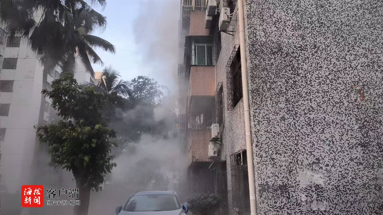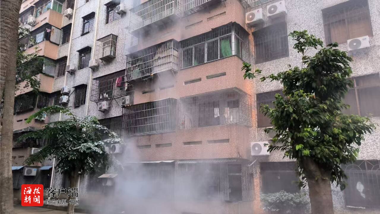不久,琼山区消防救援人员到达现场后看到烟雾弥漫,烟雾已蔓延到楼上、楼下的居民。消防救援人员立即用水枪喷水灭火,所幸无人员伤亡。