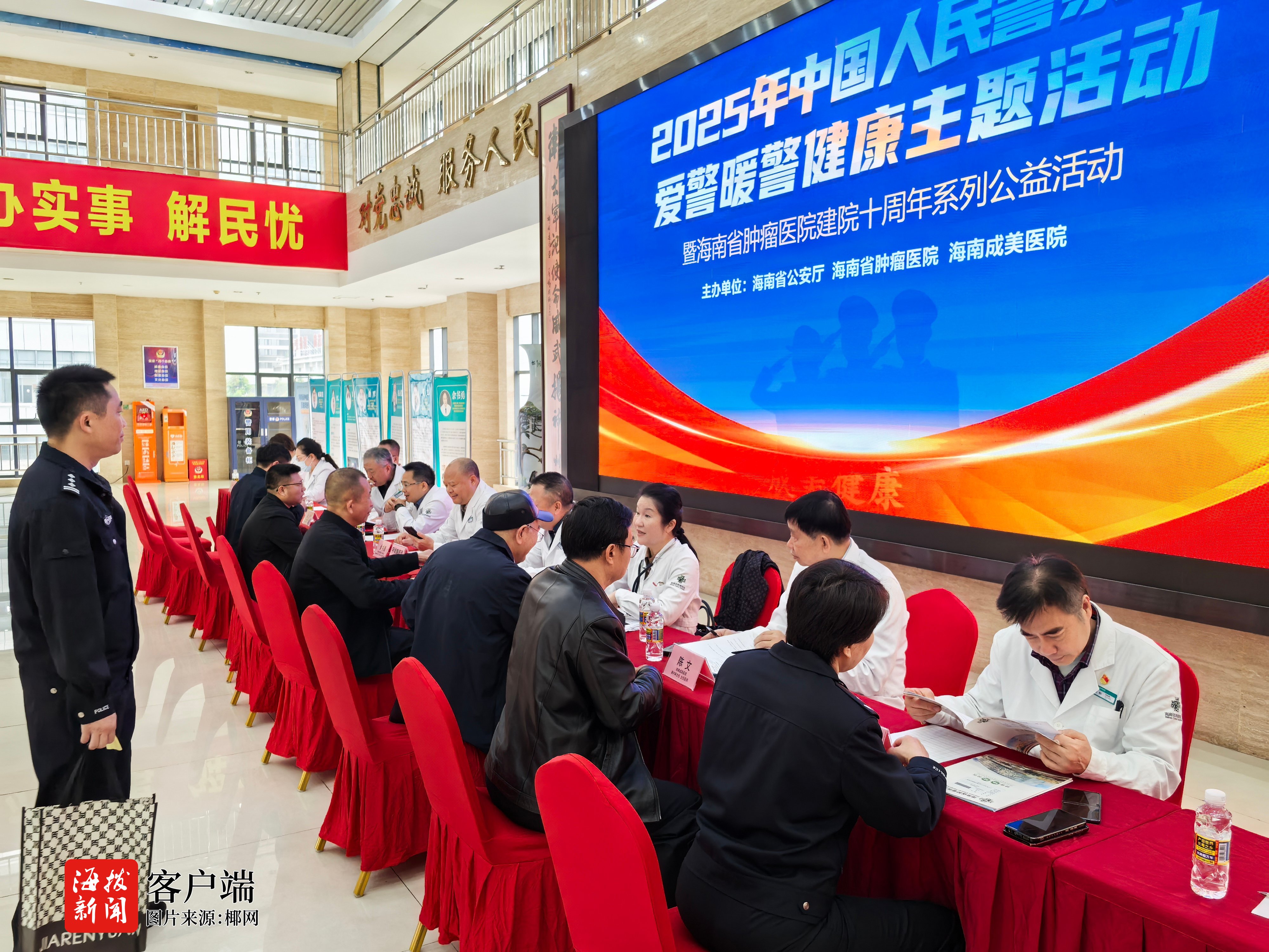 海南省肿瘤医院市场宣传部主任蒙婵瑜介绍,长期以来医院致力于公益事业,在过去的2024年里共举办了73场公益活动,把健康送到全省7305位群众身边。本次以“1.10警察节”为契机,专门针对公安民警组织了年度首场健康公益活动,医院组织了一支“专家医疗团”,涵盖十余种学科专业,对公安民警职业特点有针对性地开展体检报告解读、健康咨询,为广大公安民警献上一场丰盛的“健康盛宴”。