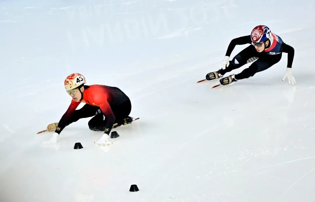 △2月8日,在哈尔滨举行的第九届亚冬会短道速滑男子500米A组决赛中,中国选手林孝埈夺得冠军。新华社记者 许雅楠 摄