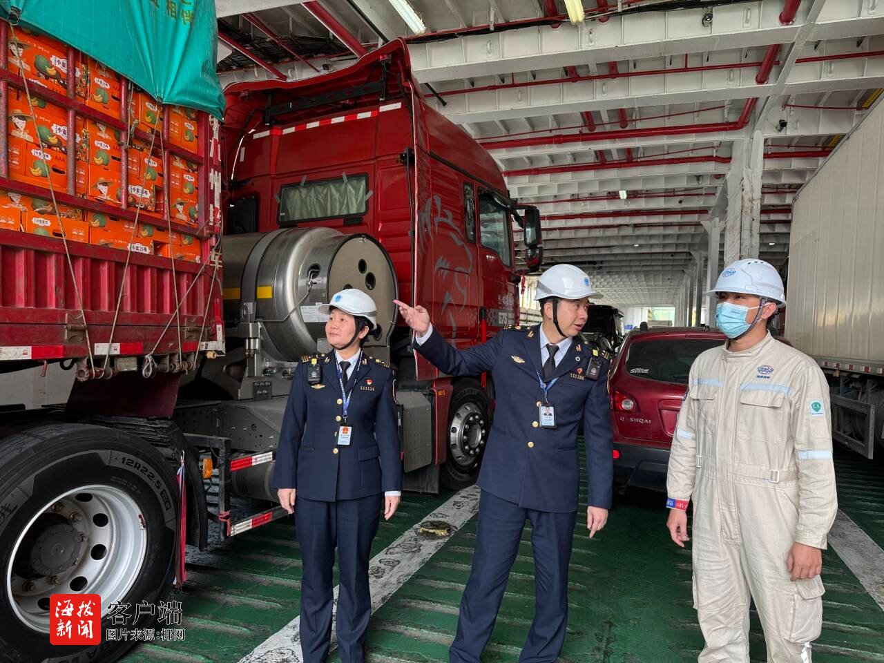 据介绍,春运期间,海口海事局充分发挥鲜活农产品运销出岛保障工作机制,主动与农业农村、公安交警、港口调度等部门搭建信息互通互联渠道,及时掌握载运瓜果菜等物资车辆的船舶情况,为春运高峰时段重点物资运输船舶开通“直进直靠、直离直出”的绿色通道。