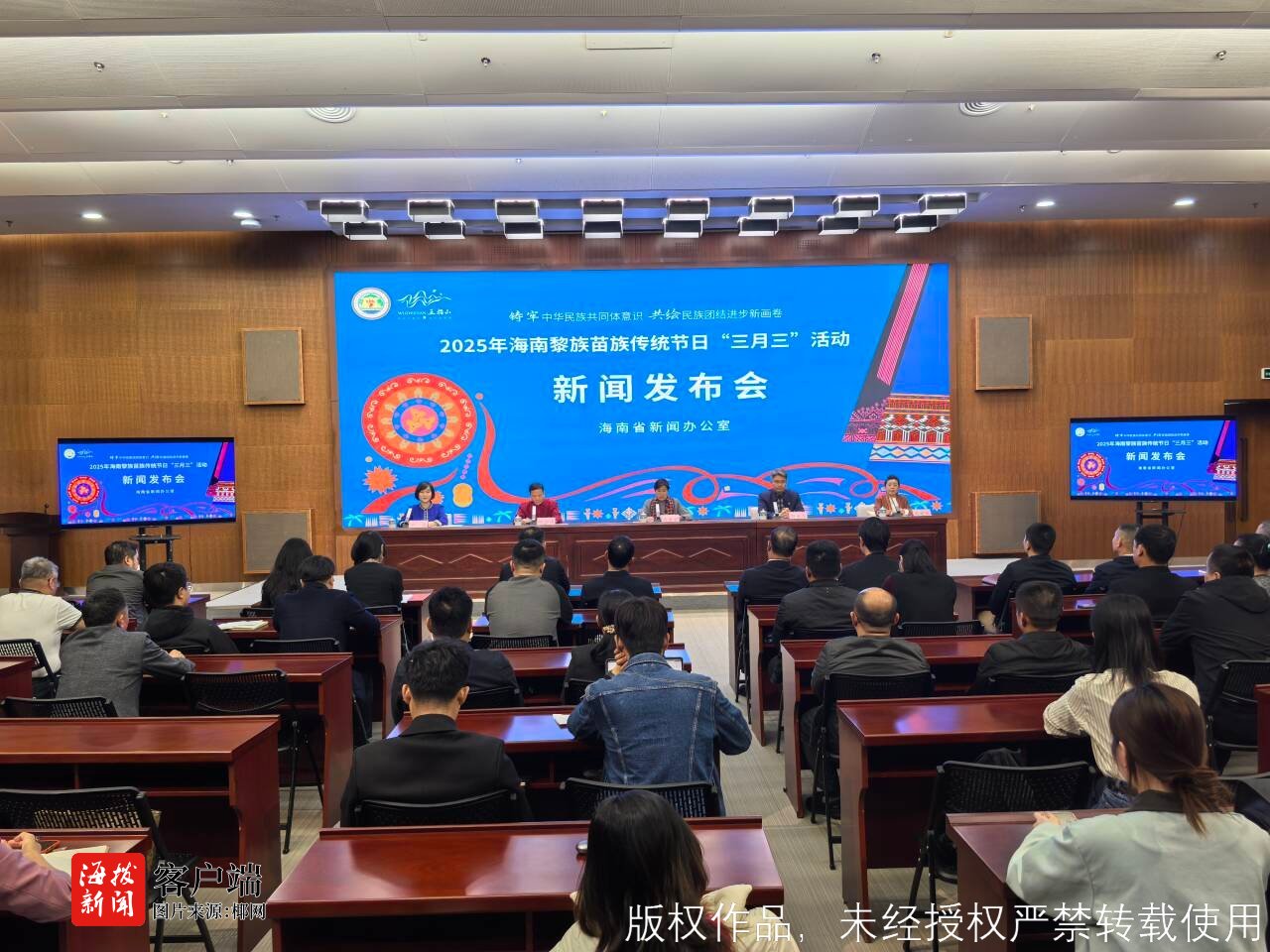 商报全媒体讯(椰网/海拔新闻记者 张艺 陈勇合 摄影报道)2月25日,海南省新闻办公室在海口举行2025年海南黎族苗族传统节日“三月三”活动新闻发布会。据悉,2025年海南黎族苗族传统节日“三月三”活动筹备工作正在有序推进,今年的主会场活动将于3月31日(乙巳年农历三月初三)在五指山市拉开序幕。