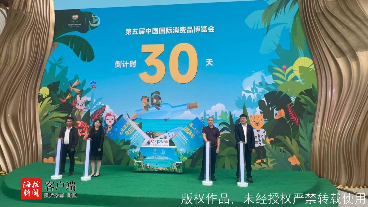 商报全媒体讯(椰网/海拔新闻记者 柯育超 摄影报道)3月13日,第五届中国国际消费品博览会(以下简称“第五届消博会”)30天倒计时活动暨吉祥物新形象发布会在海口举行。海南国际经济发展局总经济师曾蓉、海南省林业局副局长陈康等出席发布会,并共同发布第五届消博会全新形象并为30天倒计时牌揭幕。