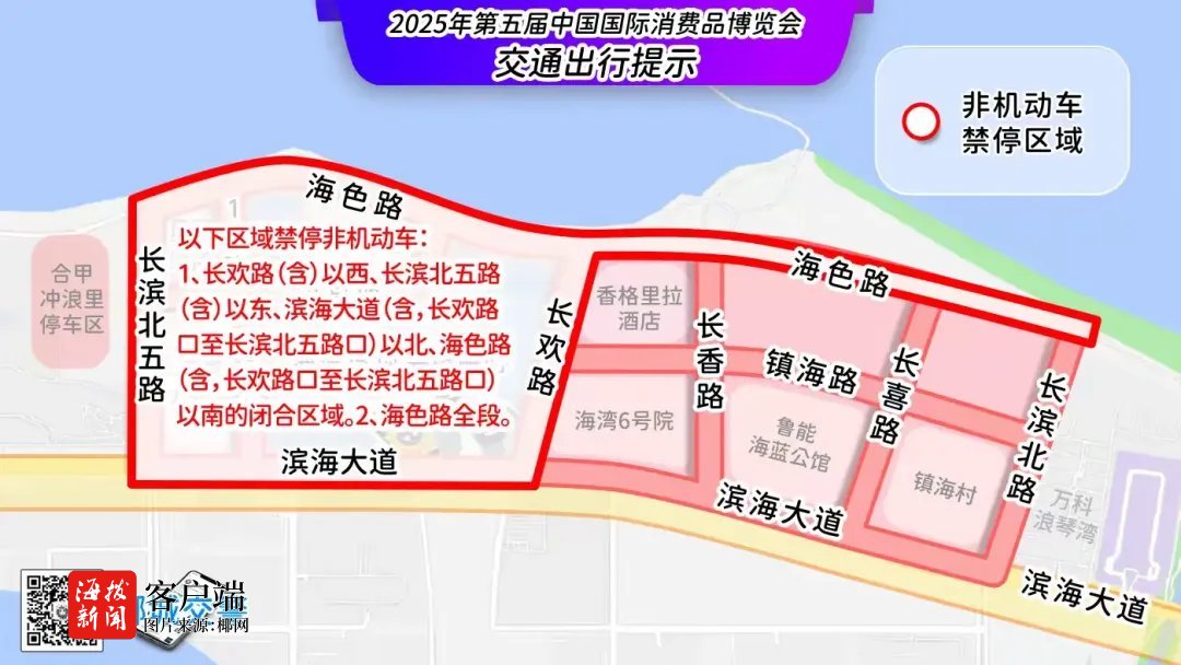 商报全媒体讯(椰网/海拔新闻记者 陈勇合)4月13日至18日,第五届中国国际消费品博览会将在海南国际会议展览中心举办。那么,市民要去逛展该怎么走?海口交警发布自驾车、网约车、电动自行车、公共交通攻略。