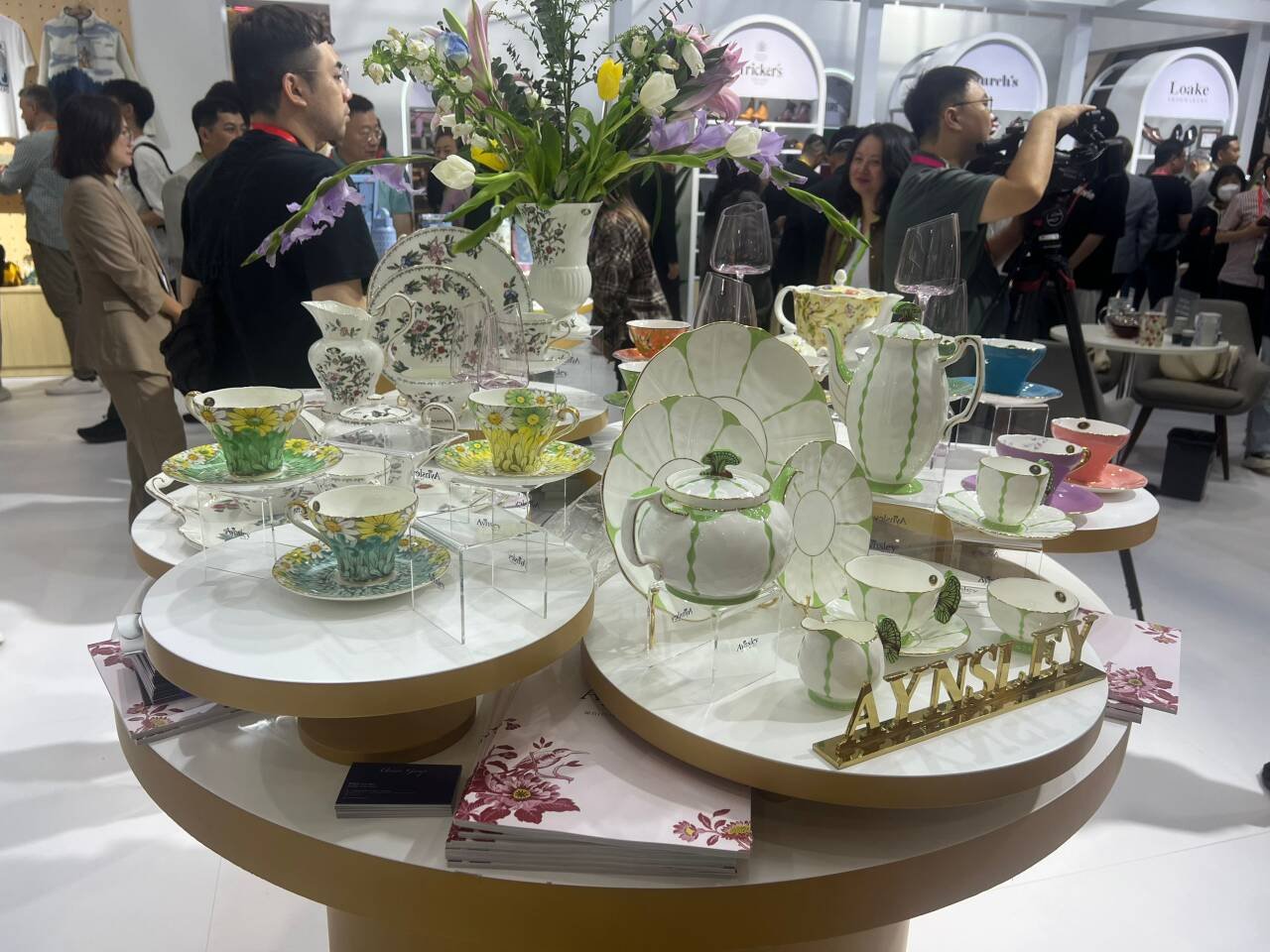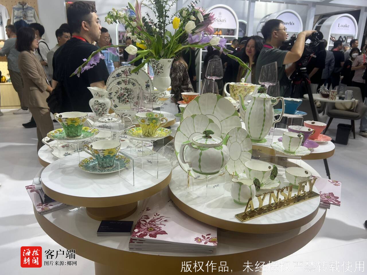 本届消博会,英国国家馆展出包括英国奢华餐具及生活品牌Wedgwood、专业户外品牌Crachoppers、手工鞋履品牌Tricker's、知名彩妆品牌Pi等在内的27个英国标杆品牌。记者注意到,不少观众正用摄像机、手机对展品进行拍摄。“英国馆展出的精品很别致,一些杯子和盘子的花纹很好看,让人忍不住想多拍几张图片。我最喜欢的就是这个粉色的杯子,它和我们普通的圆形杯子不同,杯口一高一低,感觉很有艺术感。”李女士在接受记者采访时说道。