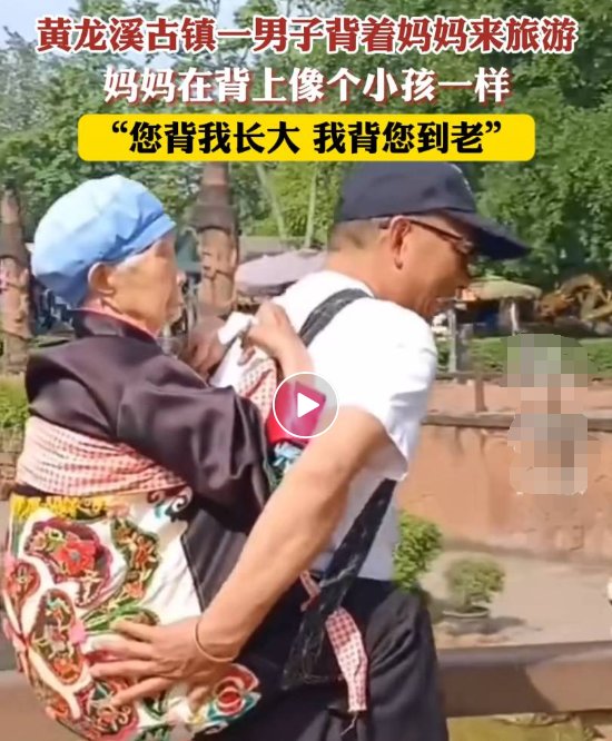 近日,一男子背着妈妈在景区旅游的视频“走红”网络。