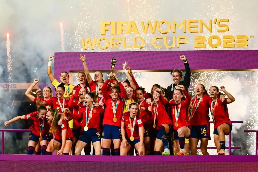 2023年8月20日,西班牙队在颁奖仪式上庆祝夺得女足世界杯冠军。新华社记者 朱炜 摄