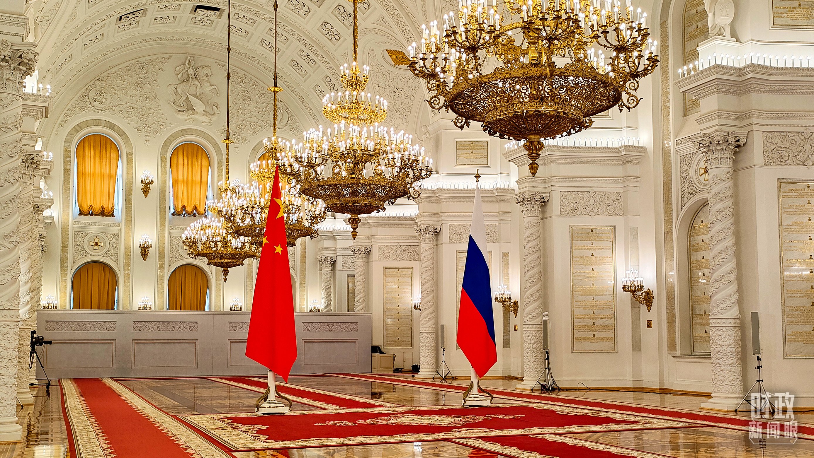 △当天,中俄两国元首在这里共同出席签字和合作文本交换仪式。(总台央视记者张洛嘉拍摄)