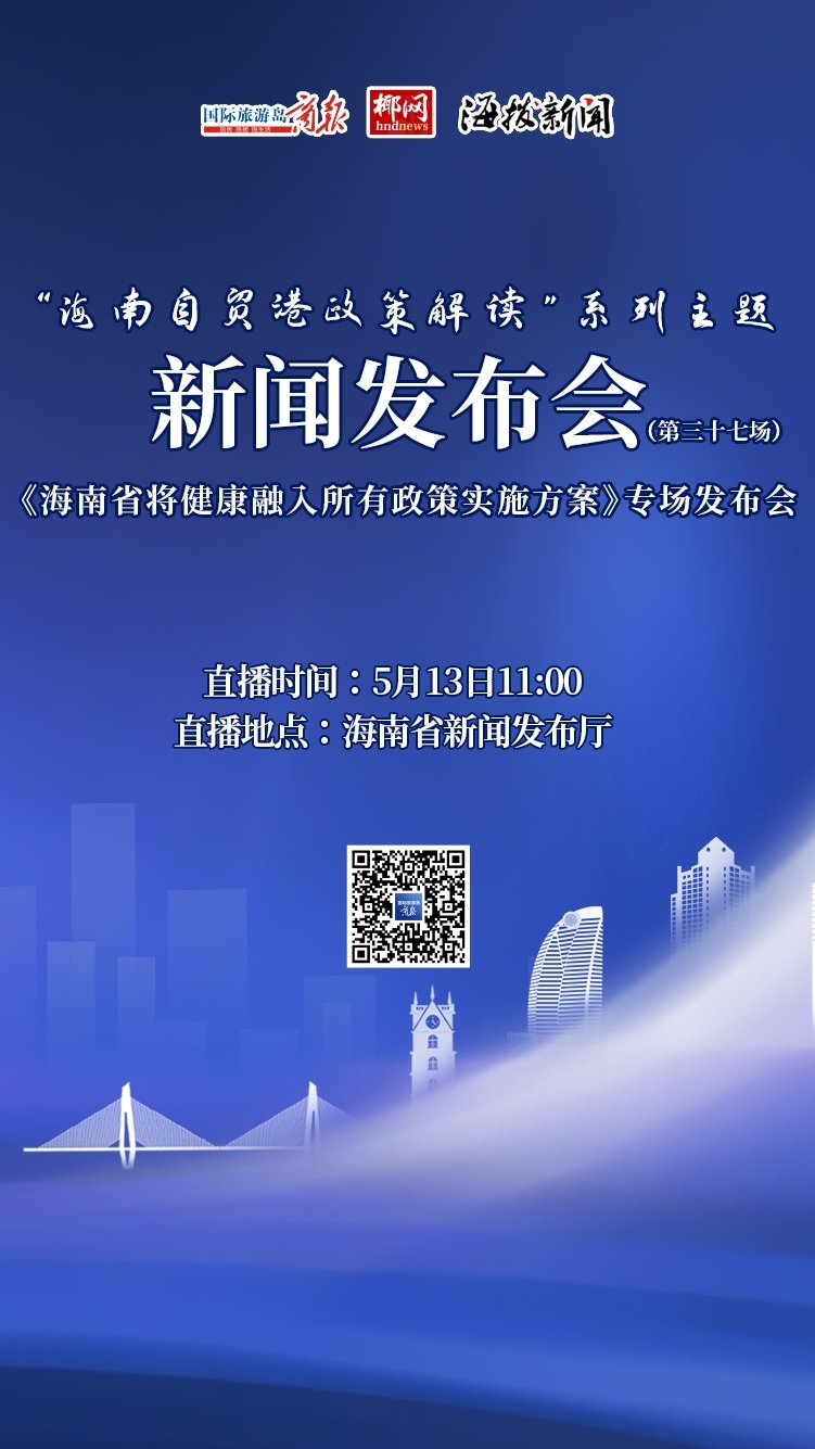 直播预告丨《海南省将健康融入所有政策实施方案》专场发布会将在海口举行