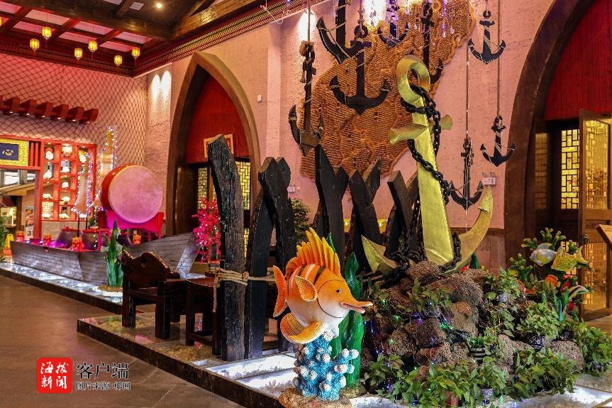 海南大院不仅汇聚东方烤乳猪、文昌鸡、东山羊等琼菜经典,更在万平米园林式空间里,将东坡书院的文墨雅韵、南洋骑楼的斑驳光影、渔港码头的碧波帆影,化作三十余间主题包厢的独特景致。食客举箸间,仿若穿越时空,在味觉与视觉的双重盛宴中读懂海南。