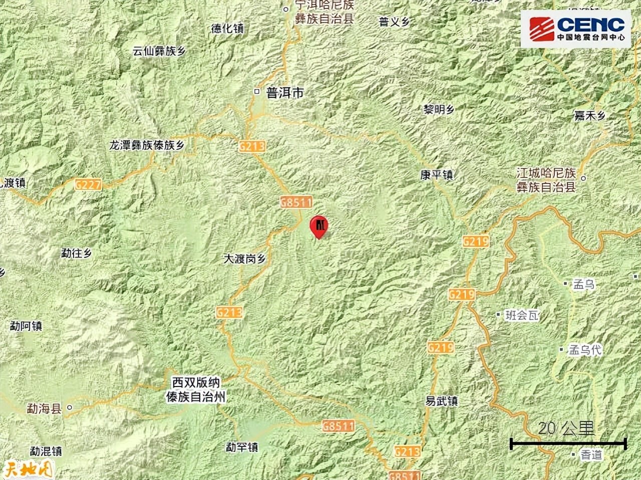 附近村镇:本次地震周边5公里内的村庄有大窝塘、联合村、大光山、查线所,20公里内的乡镇有普文镇、勐旺乡。
