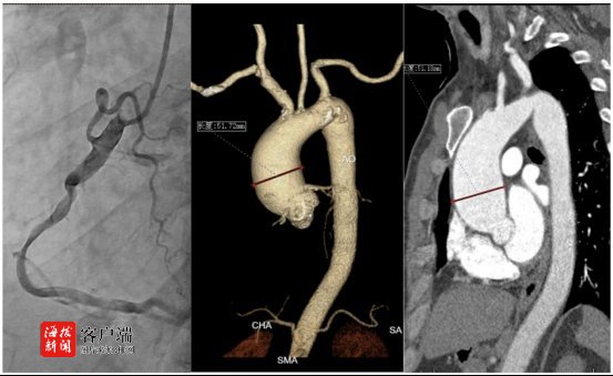 入院后,心外科团队迅速为陈先生进行了详细检查评估。在严飞主任团队、符川医生(心脏超声)、洪超医生(主动脉三维成像)以及心内科冠脉造影团队的紧密协作下,陈先生的病情很快明确: