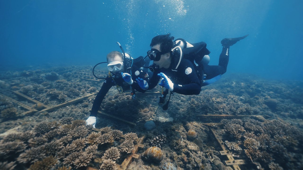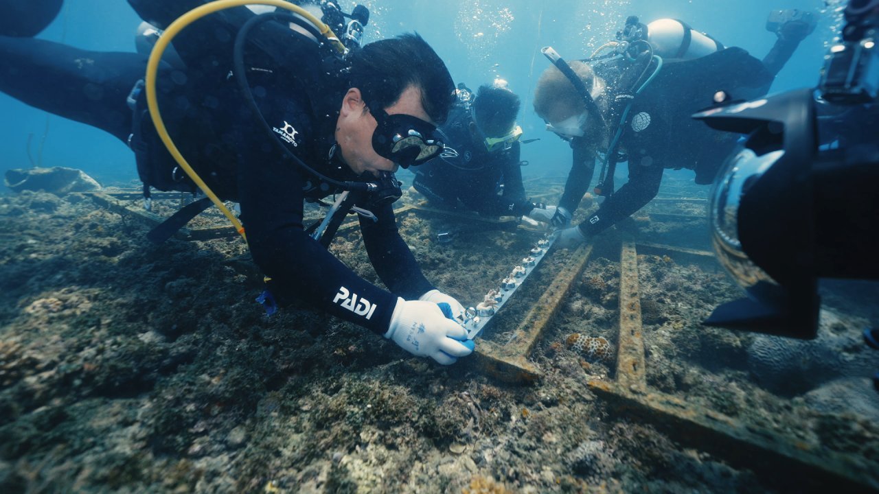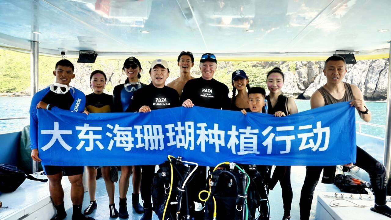 当日,黄渤化身“海洋守护者”,带领50名潜水志愿者,在海南热带海洋学院王沛政教授团队指导下潜入大东海海域,通过“清理—定位—捆绑—检查”四步操作,亲手将人工培育的珊瑚幼苗固定在保育架上,为修复海底生态系统播撒“蓝色希望”。