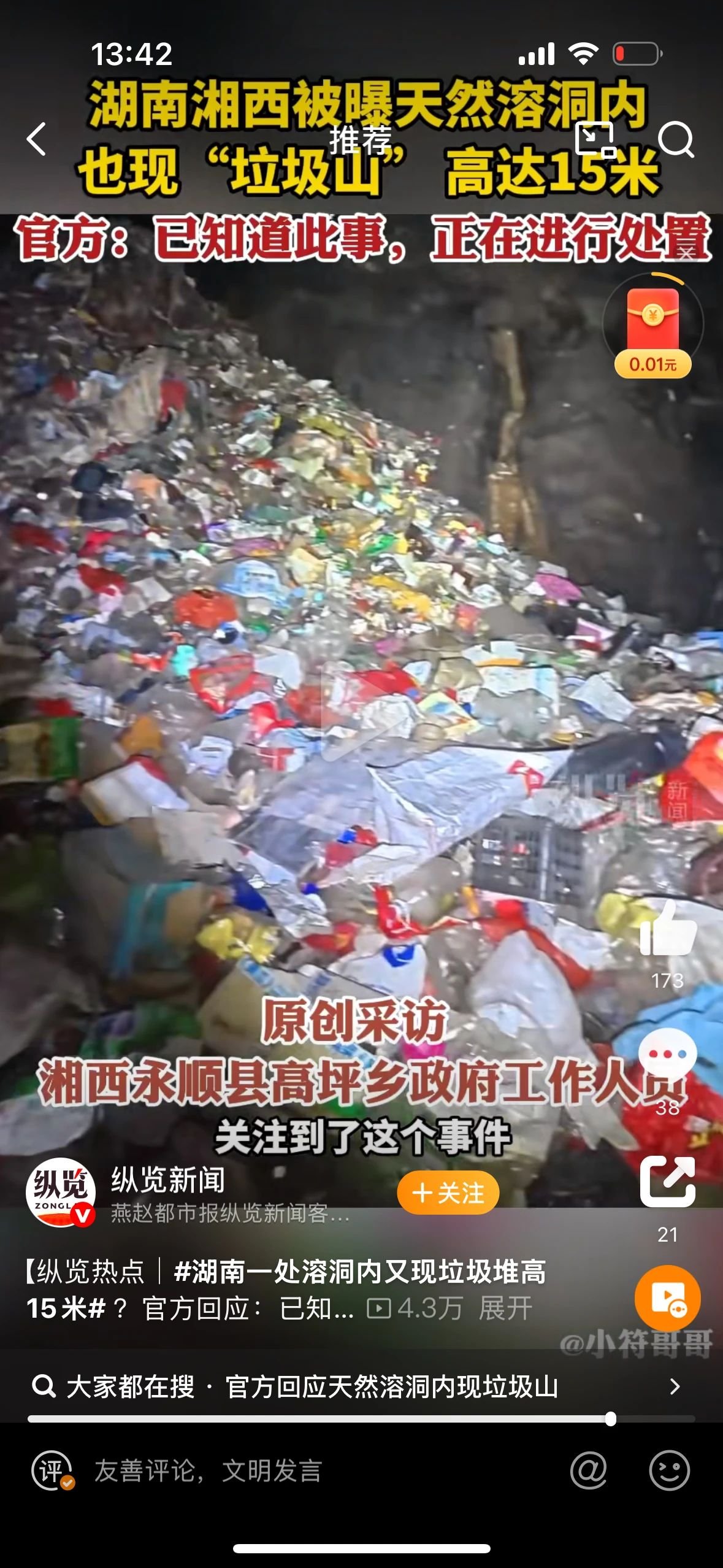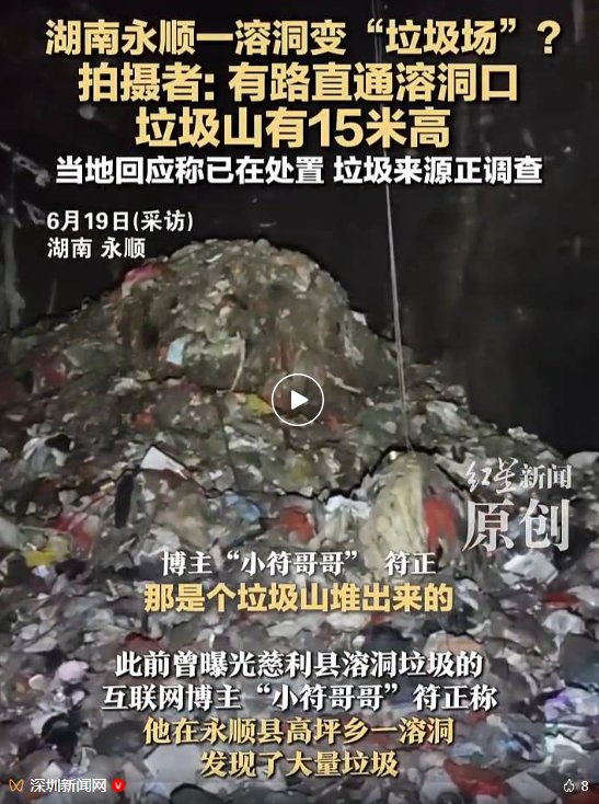 (原标题:湖南又一溶洞被曝垃圾堆积如山,“目测有15米高”,官方回应)