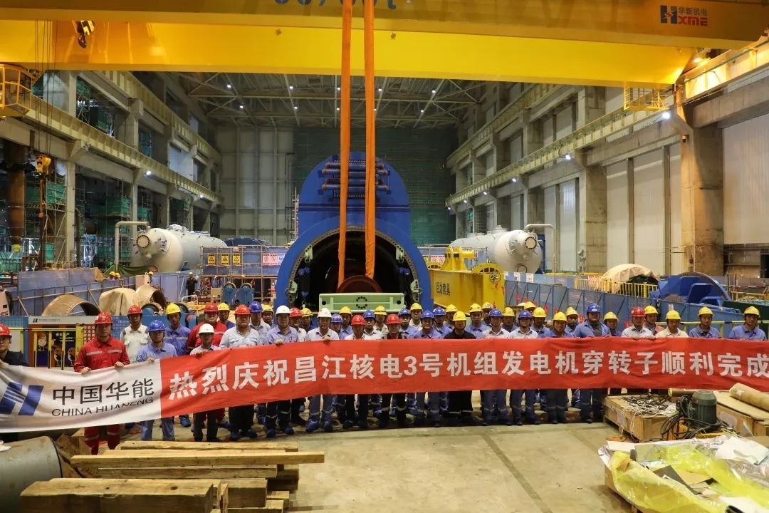 华能海南昌江核电3号机组发电机穿转子完成