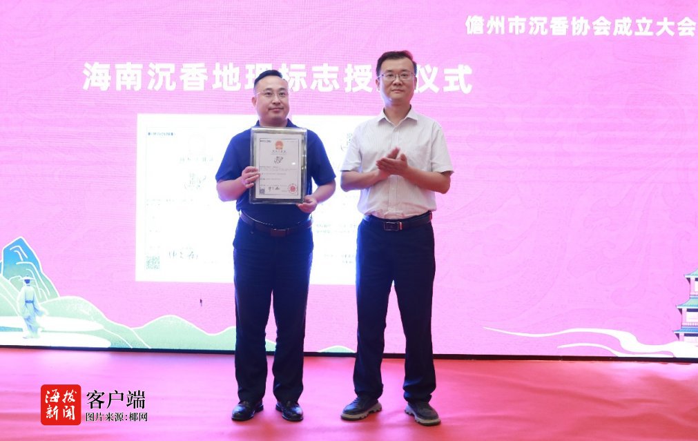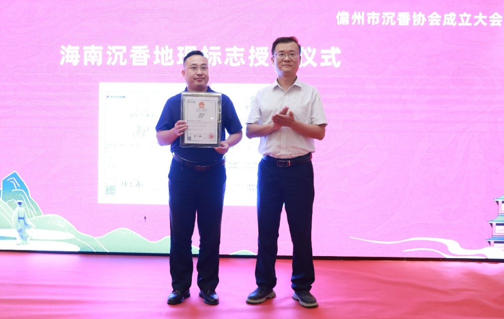 大会当天,还举行了国家地理标志证明商标授牌仪式。海南省林业科学研究院(海南省红树林研究院)副院长黄青平将“海南沉香”国家地理标志证明商标牌匾授予协会会员单位——那大沉香。