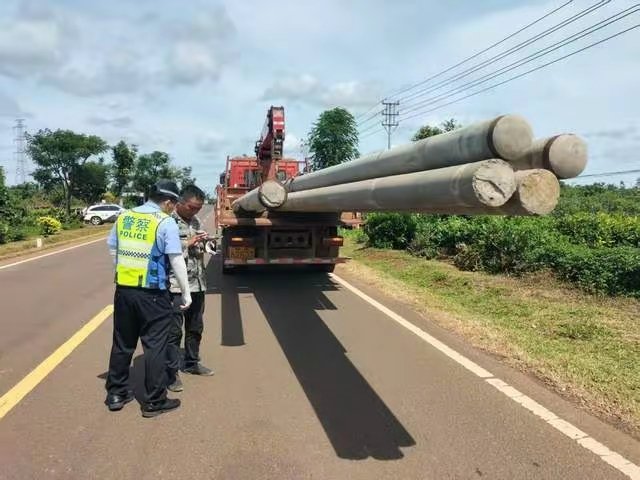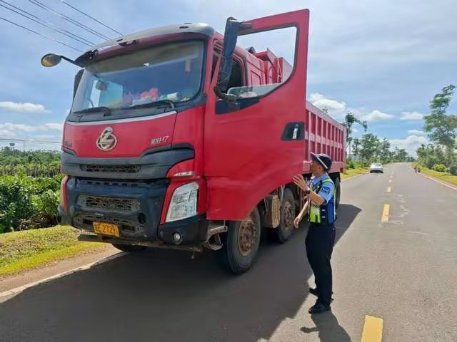 针对超载超限等行为,海口公安交警美兰大队在201省道大致坡辖区路段进行设卡检查,“超载会严重影响车辆制动和操控性能,极易引发侧翻、追尾等事故,后果不堪设想。”交警对违法驾驶员进行严肃批评教育,并依法予以处罚,同时要求驾驶员现场卸货转运,及时消除安全隐患。
