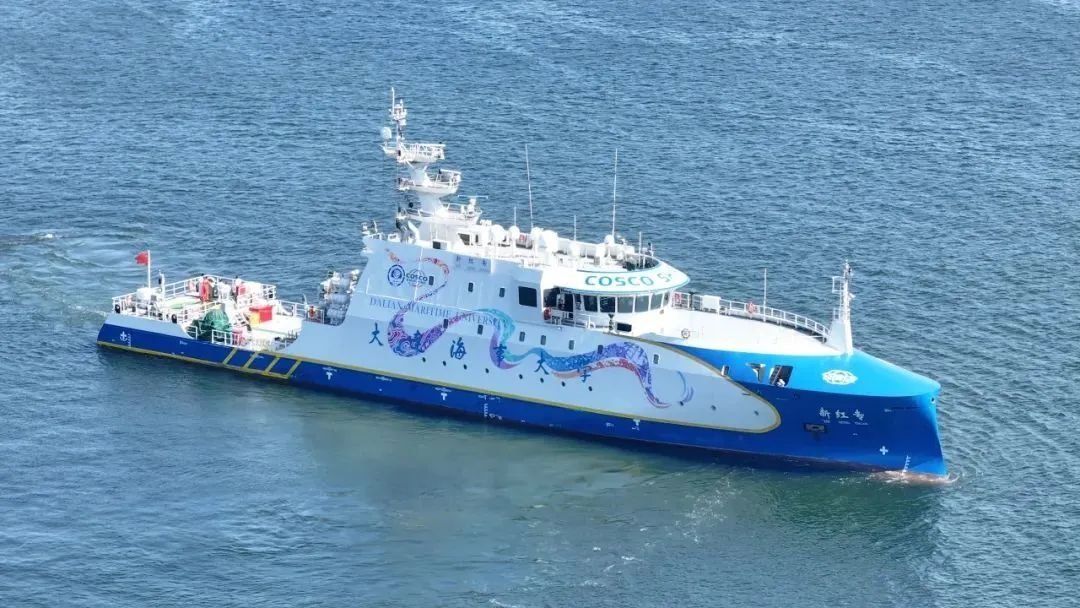 据了解,“新红专”轮是全球首艘集成自主航行与教学实训功能的船舶,该船总长69.83米,总吨1483,最大航速18.0节。
