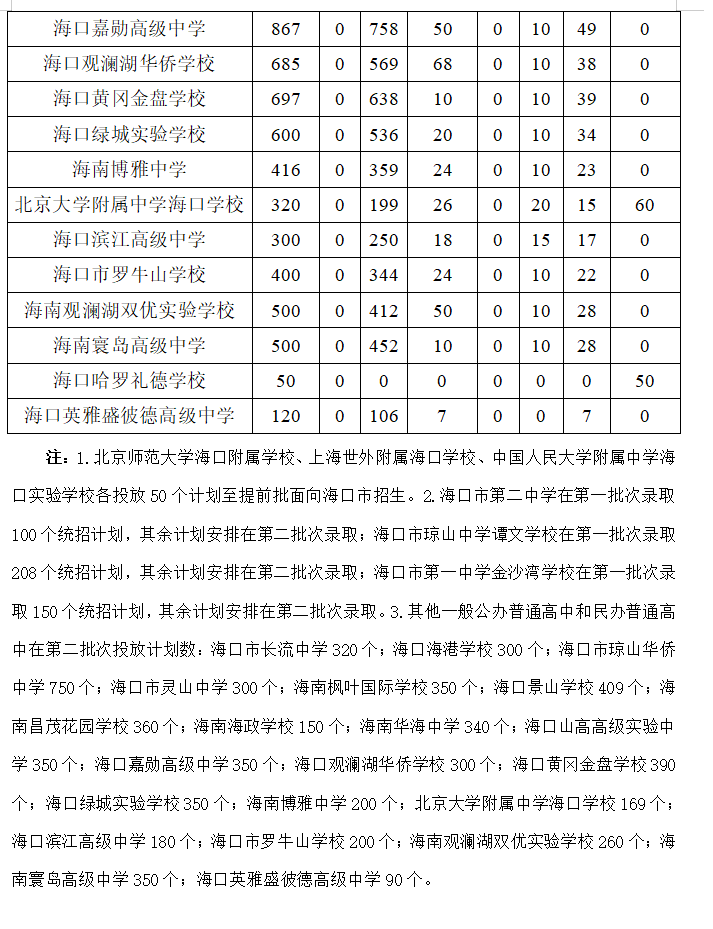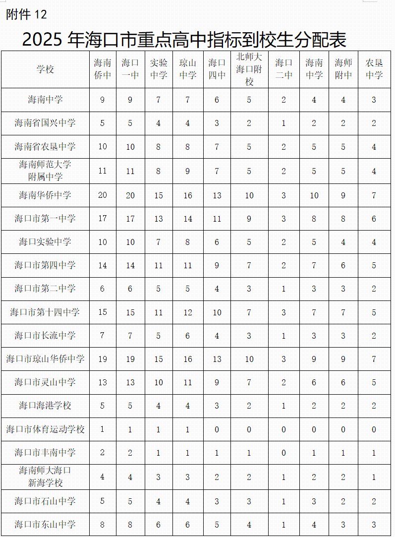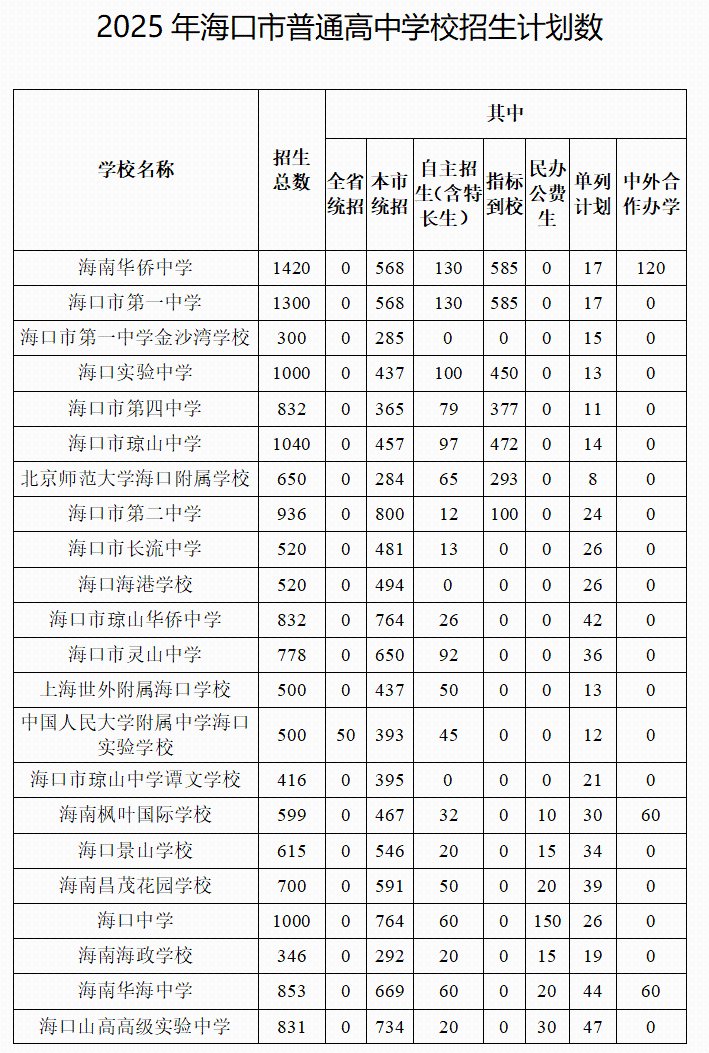 2025年海口市普通高中学校招生计划及重点学校指标到校分配计划出炉→
