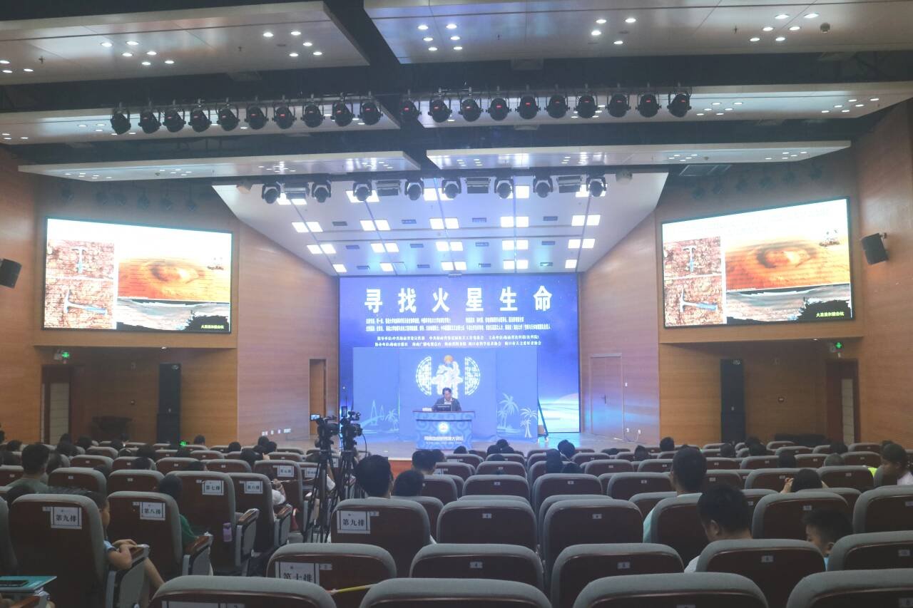 “火星上曾经有过水,现在虽然表面干燥,但在一些撞击坑的边缘,我们仍然能看到暗色的条带,这可能说明火星表面曾经有过水。”李一良展示一张火星表面的照片,引发听众的浓厚兴趣。