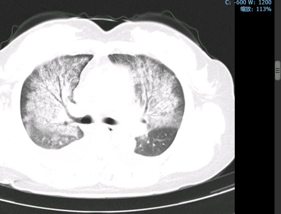 入院急查胸部CT显示:双肺见多发、弥漫性感染性病变,伴实变,累及肺间质,后进行详细查体时发现典型焦痂。