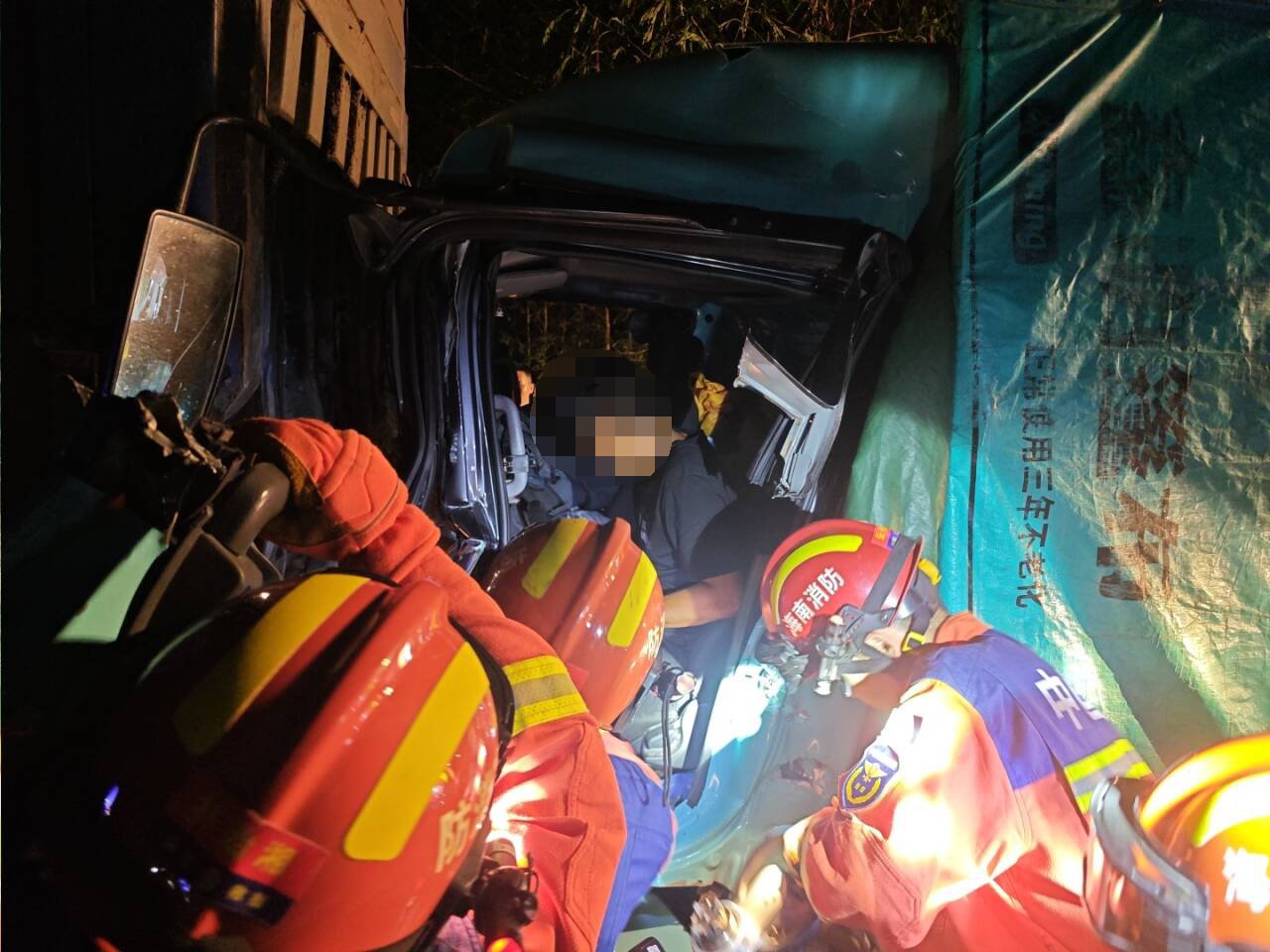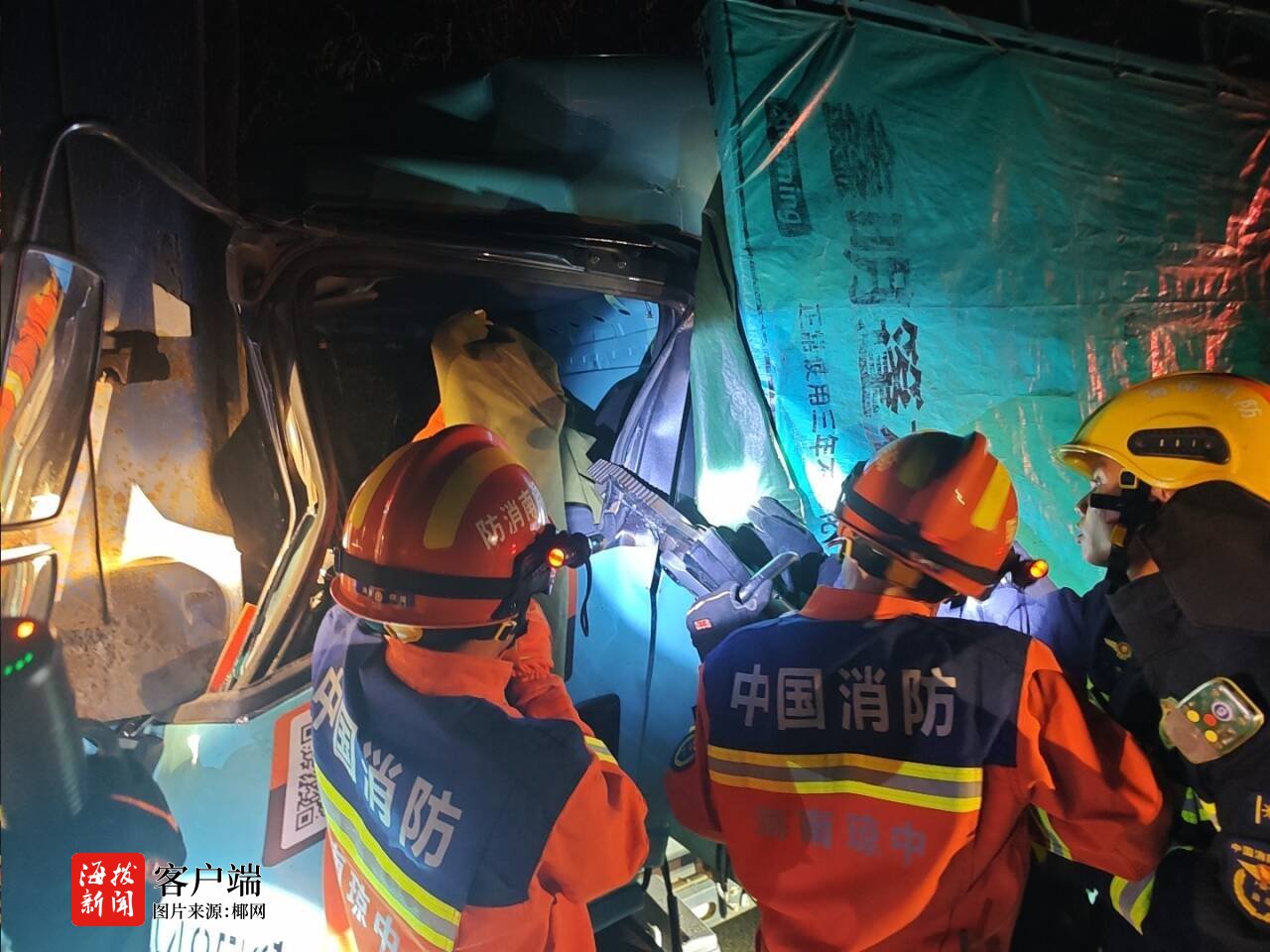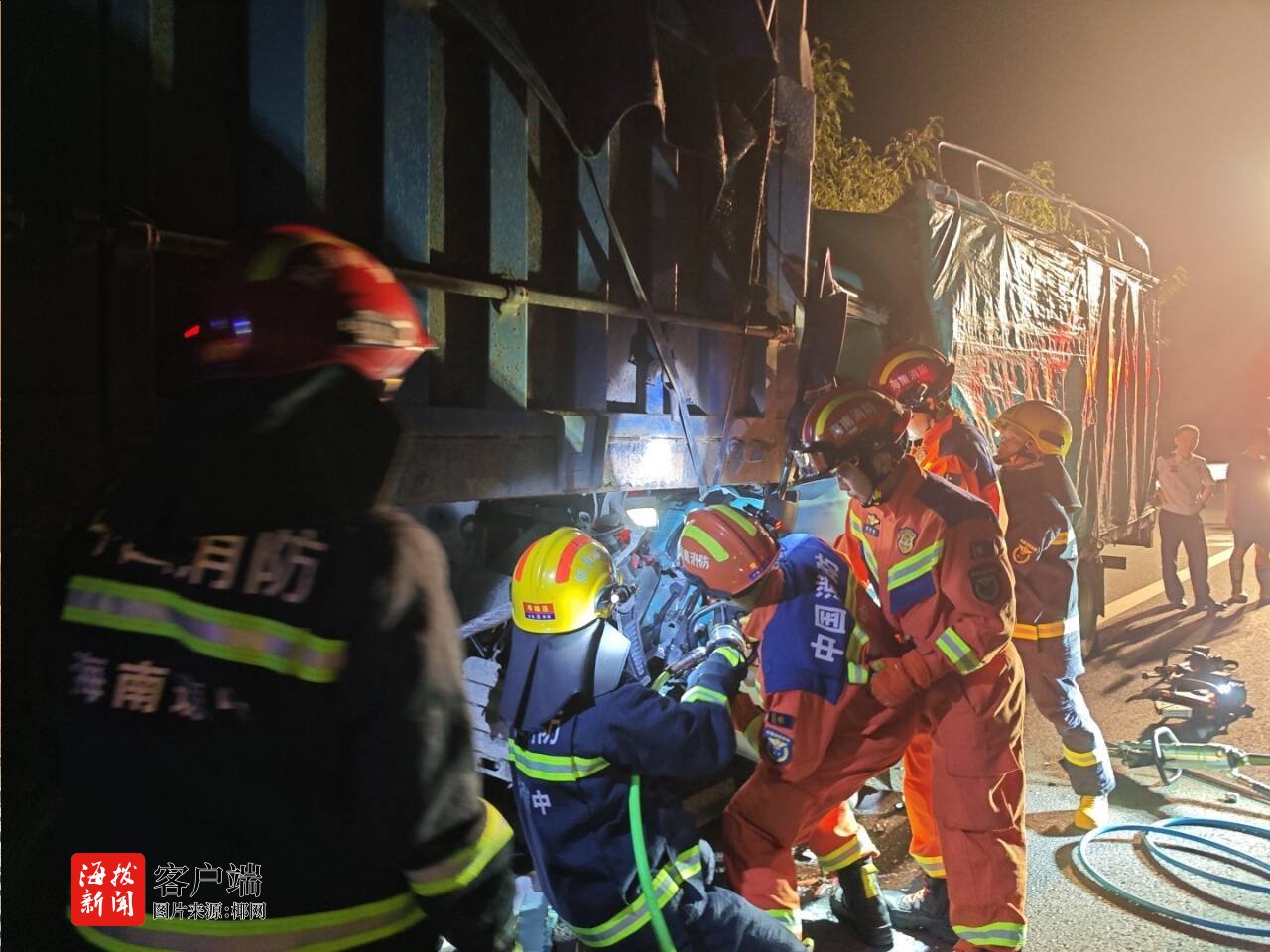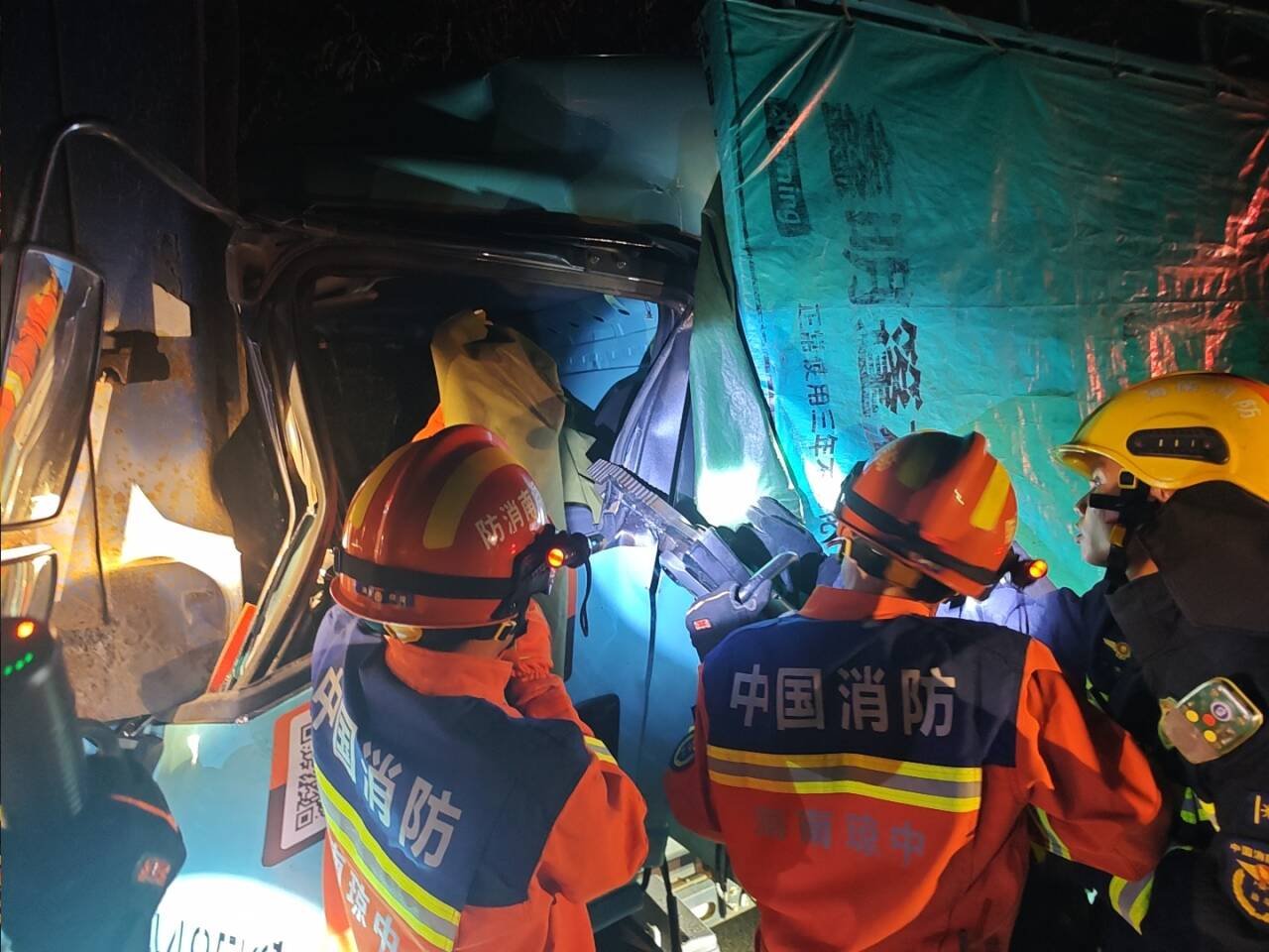 高速追尾致司机被困 琼中消防紧急破拆救援