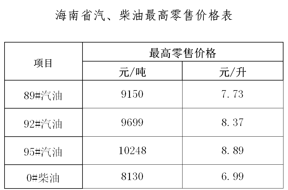 商报全媒体讯(椰网/海拔新闻记者 柯育超)7月15日,记者从海南省发展和改革委员会获悉,根据国家发展改革委官网新闻发布中心今日公布的国内成品油价格调价信息,国内汽、柴油价格(标准品)每吨分别下调130元和125元。省发展改革委按照现行成品油价格形成机制调整海南省汽、柴油最高零售价格,自7月16日0时起执行。