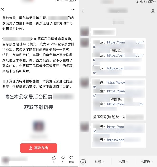 发布违规搬运资源、盗版影视内容,未经版权方授权提供影视类在线观看业务,或引流至外部平台提供相关影视资源下载。
