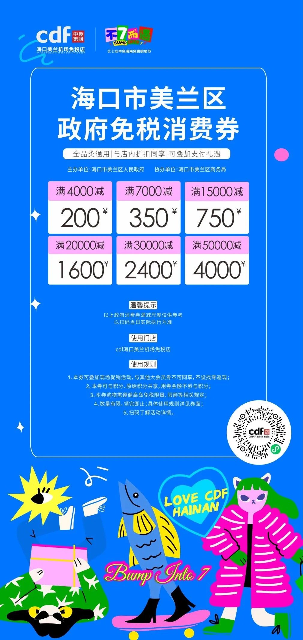 最高可减4000元!7月第二波海口美兰区政府免税消费券来了