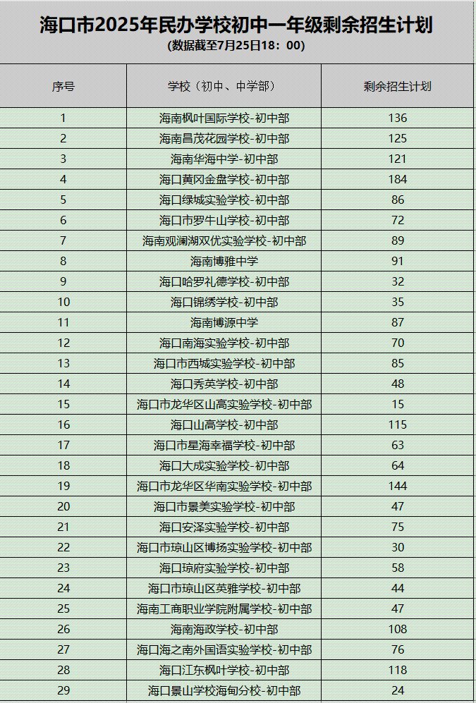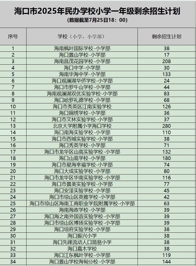 家长速看!海口部分民办学校还有剩余学位→