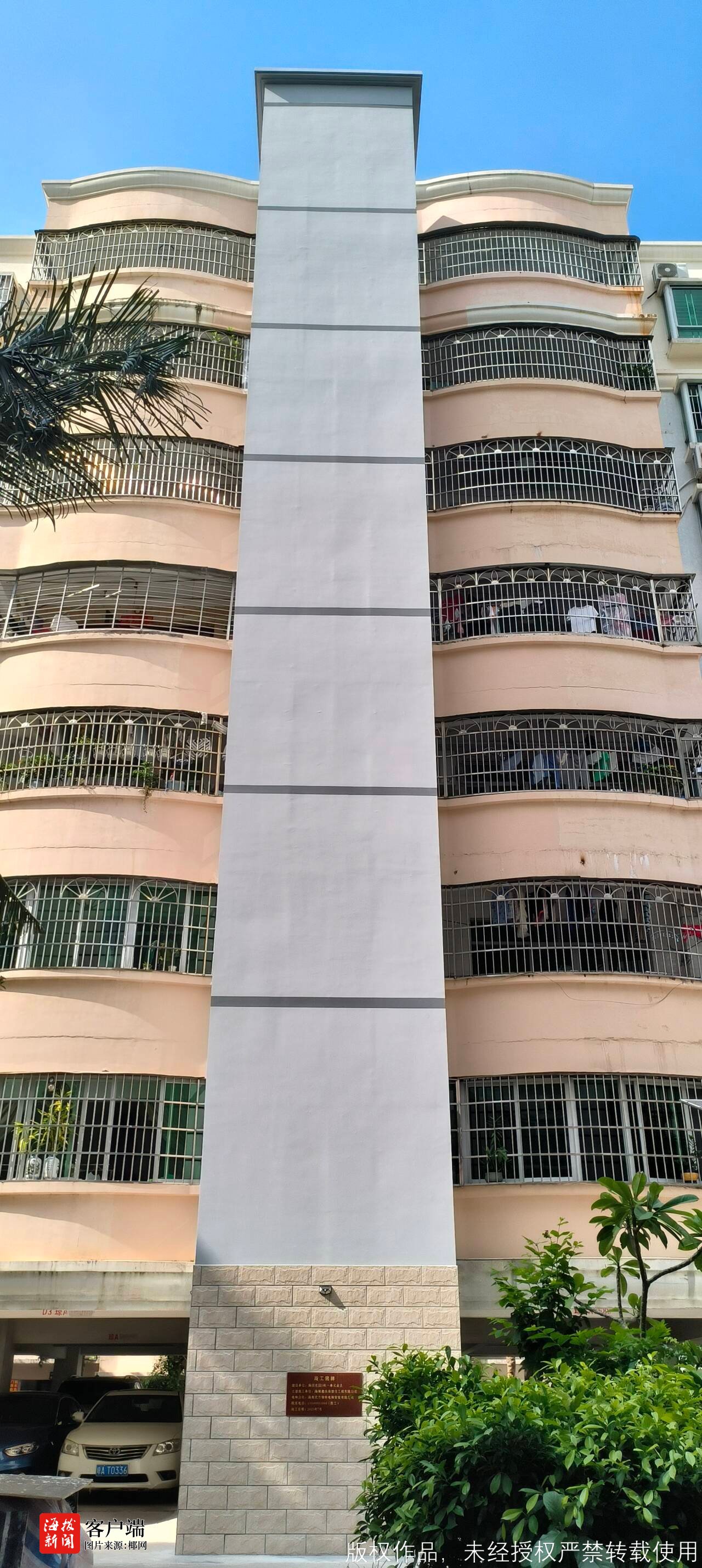 今年8月1日,海口市文明东路一老旧小区1号楼外挂式电梯正式投入使用,成为该小区一道亮丽的风景线。电梯采用镜面不锈钢材质与低多边形镂空设计,与周边环境和谐相融。68岁的住户林阿婆激动地说:“以前买菜爬楼要歇三次,现在电梯直达家门口,真是太方便了!”年轻父母推着婴儿车、老人拄着拐杖有序乘梯,电梯轿厢的观景窗将椰树婆娑的院景纳入流动画卷,居民们的生活质量得到了显著提升。