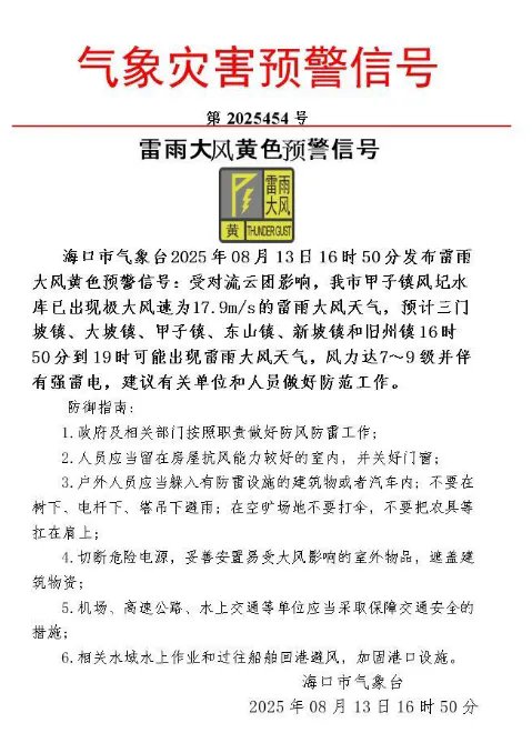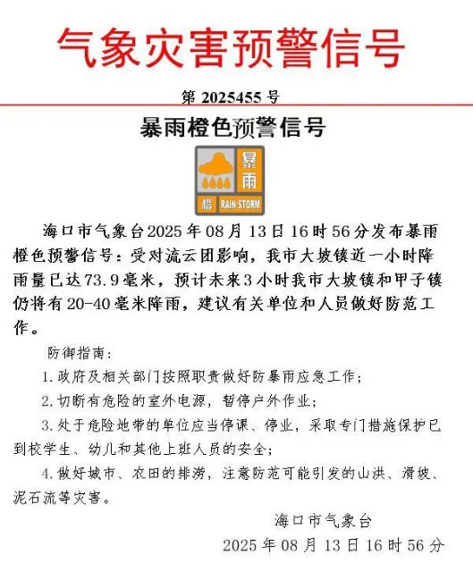 海口2025年8月13日16时56分