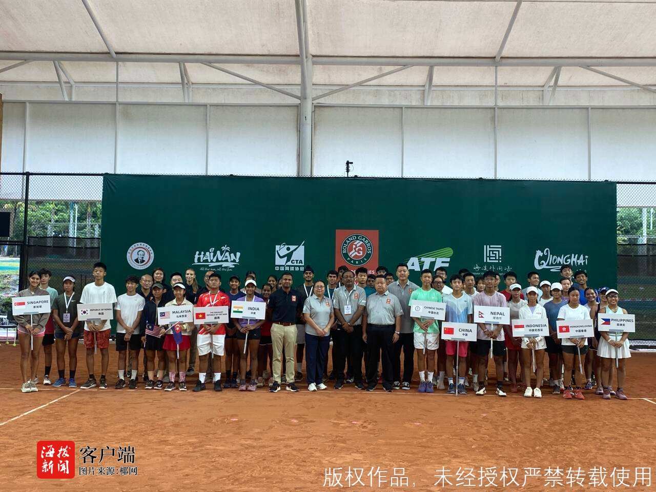 商报全媒体讯(椰网/海拔新闻记者 王春棠 摄影报道)8月18日,由亚洲网球联合会(ATF)授权、中国网球协会与法国网球协会(FFT)共同主办,海南省旅游和文化广电体育厅指导,琼海市旅游和文化广电体育局与海南海淀外国语实验学校联合承办的“2025年法网罗兰加洛斯青少年外卡赛-东亚、东南亚和南亚区域预选赛”在海淀外国语红土网球中心隆重开幕。来自11个国家及地区的48名青少年网球精英齐聚海南琼海,争夺通往十月在日本举办的“2025年法网罗兰加洛斯青少年外卡赛”正赛的资格。